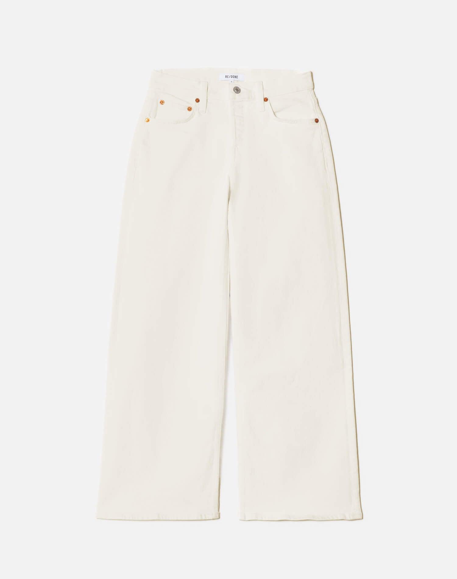 Reinterpreting our iconic Levi's Wide Leg Crop into a clean Mid Rise with a wider leg opening. Features a vintage inspired creamy wash on comfort stretch denim, classic button fly and finished hem.