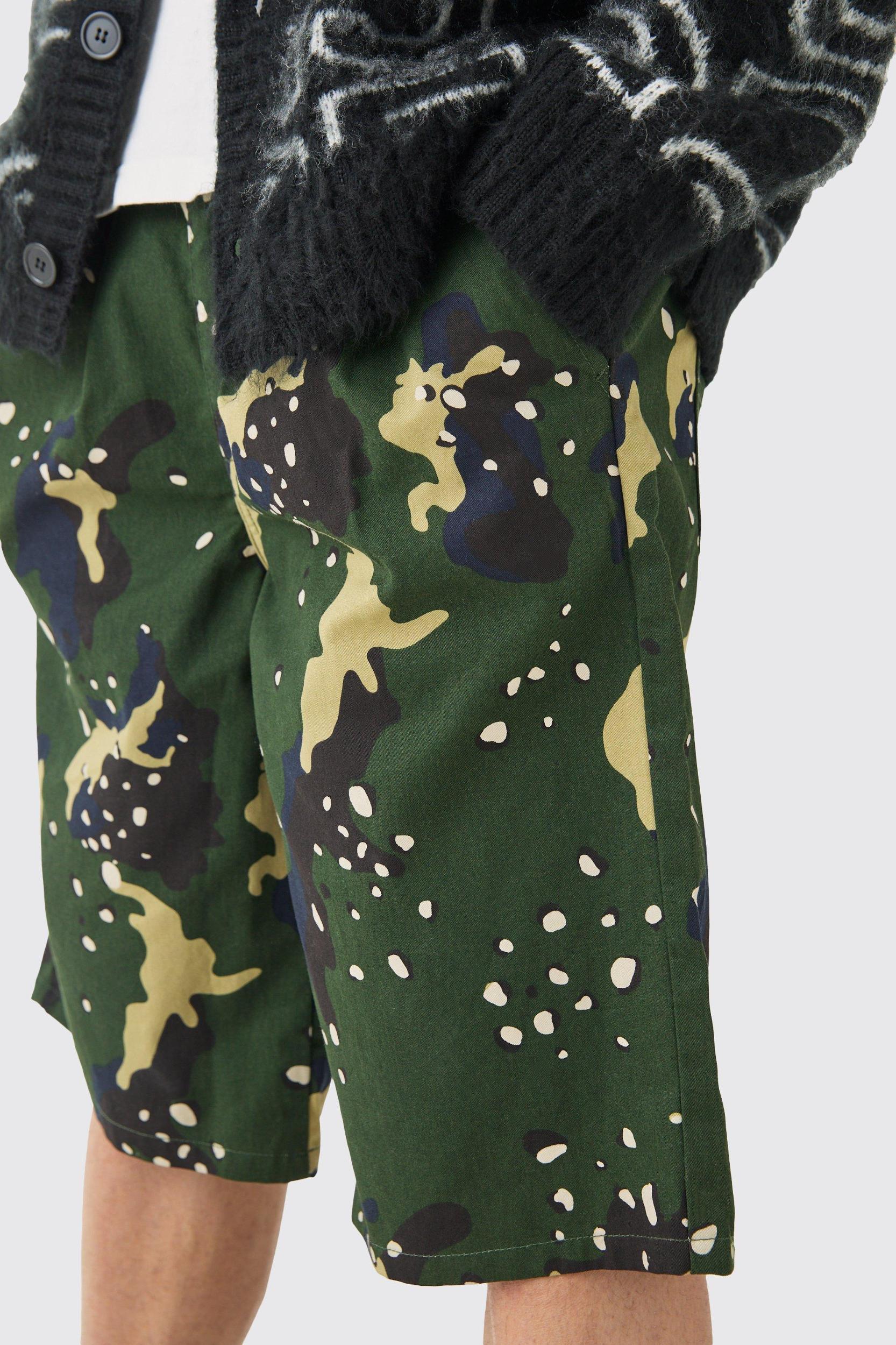 Mens Green Comfort Waist Belted Camo Jorts - Jump on the hottest trend yet with jorts. Opt for the trend of the season with our collection of mens jorts. Youll never get bored of these edgy pieces, whether youre heading off to meet your friends in the sun or youre just looking for a vintage inspired look, weve got you covered. Choose from a range of on styles, prints and colours with everything from tinted rips to multi pockets, youre gonna love these pieces. Heading out for a day session? Grab a pair of our ripped denim jorts and team with your fave graphic tee, chunky trainers and retro sunglasses, whats not to love?Style: Plain ShortsDesign: PlainFabric: CottonLength: Long