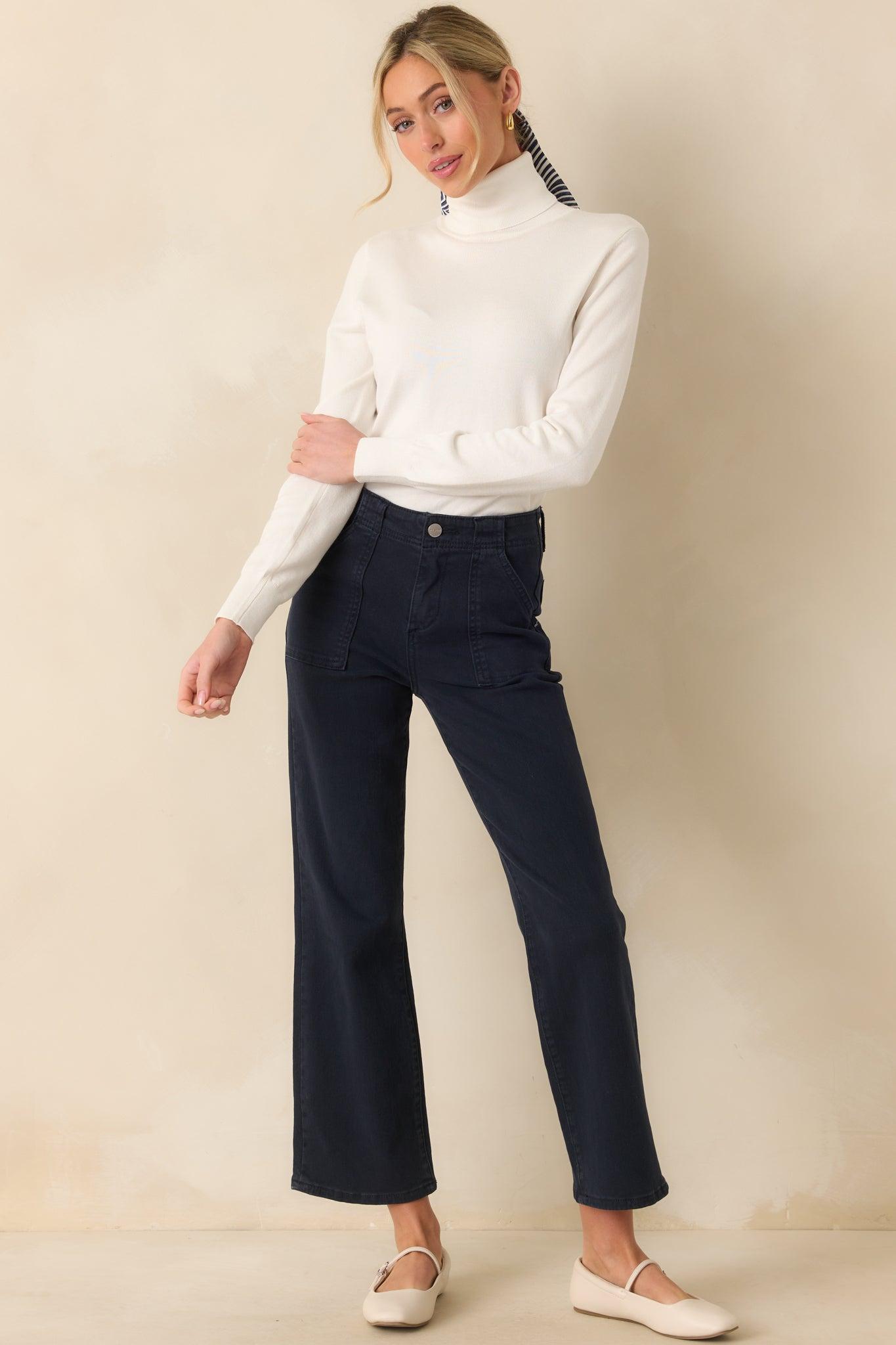 The Comfortable Charm Ivory Turtleneck Sweater is proof that comfort and style really can go hand in hand. It’s soft, timeless, and the kind of piece you’ll want to live in all season long. This ivory sweater features a turtle neckline, long sleeves with ribbed cuffs, a ribbed bottom hem that tapers in, and a super soft feel. 70% Viscose, 30% Nylon Machine Wash Warm Unlined Imported Model is 5'8" and is wearing a size small.
