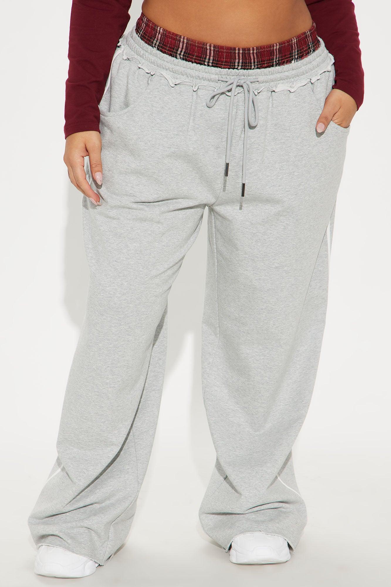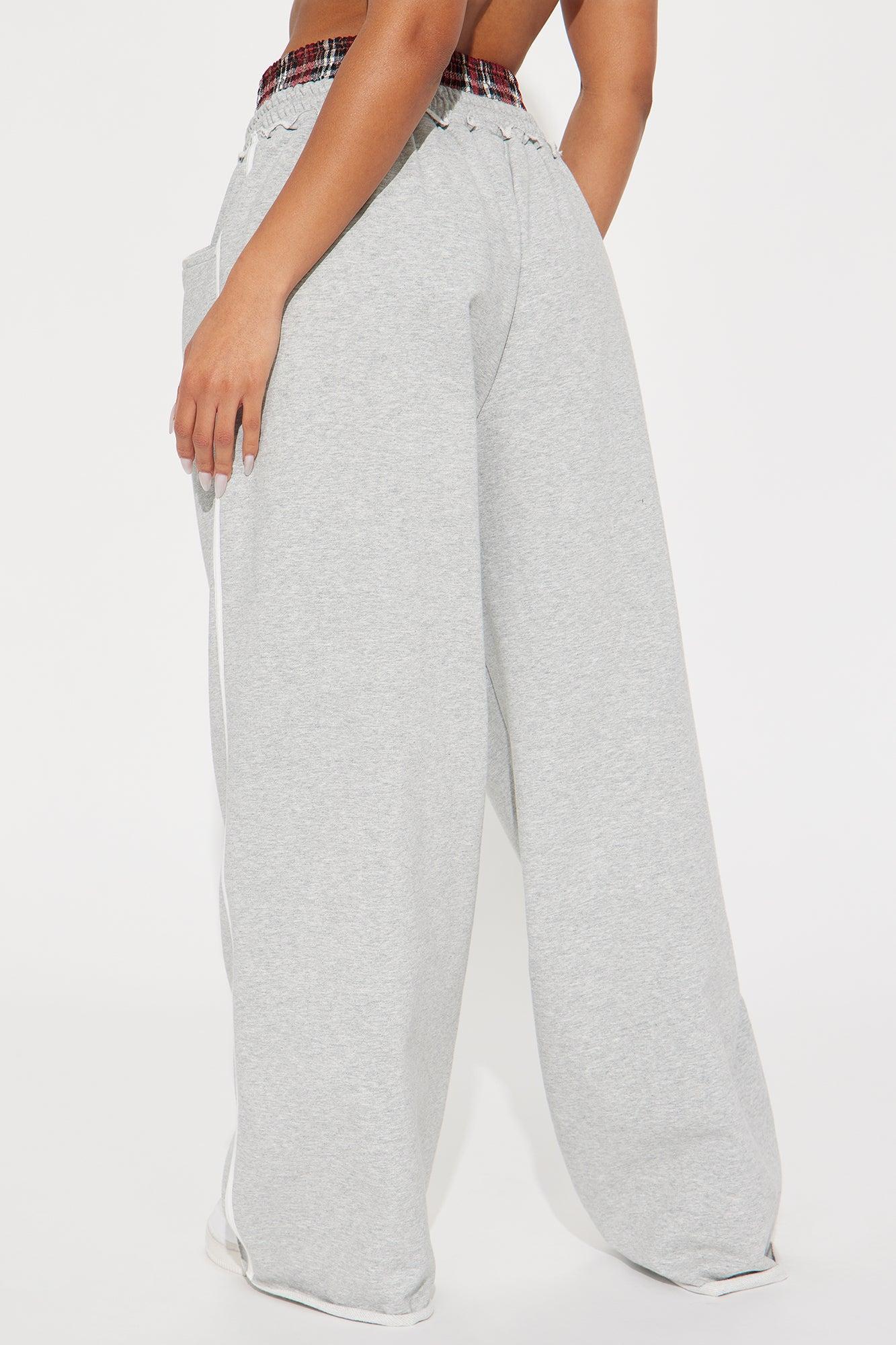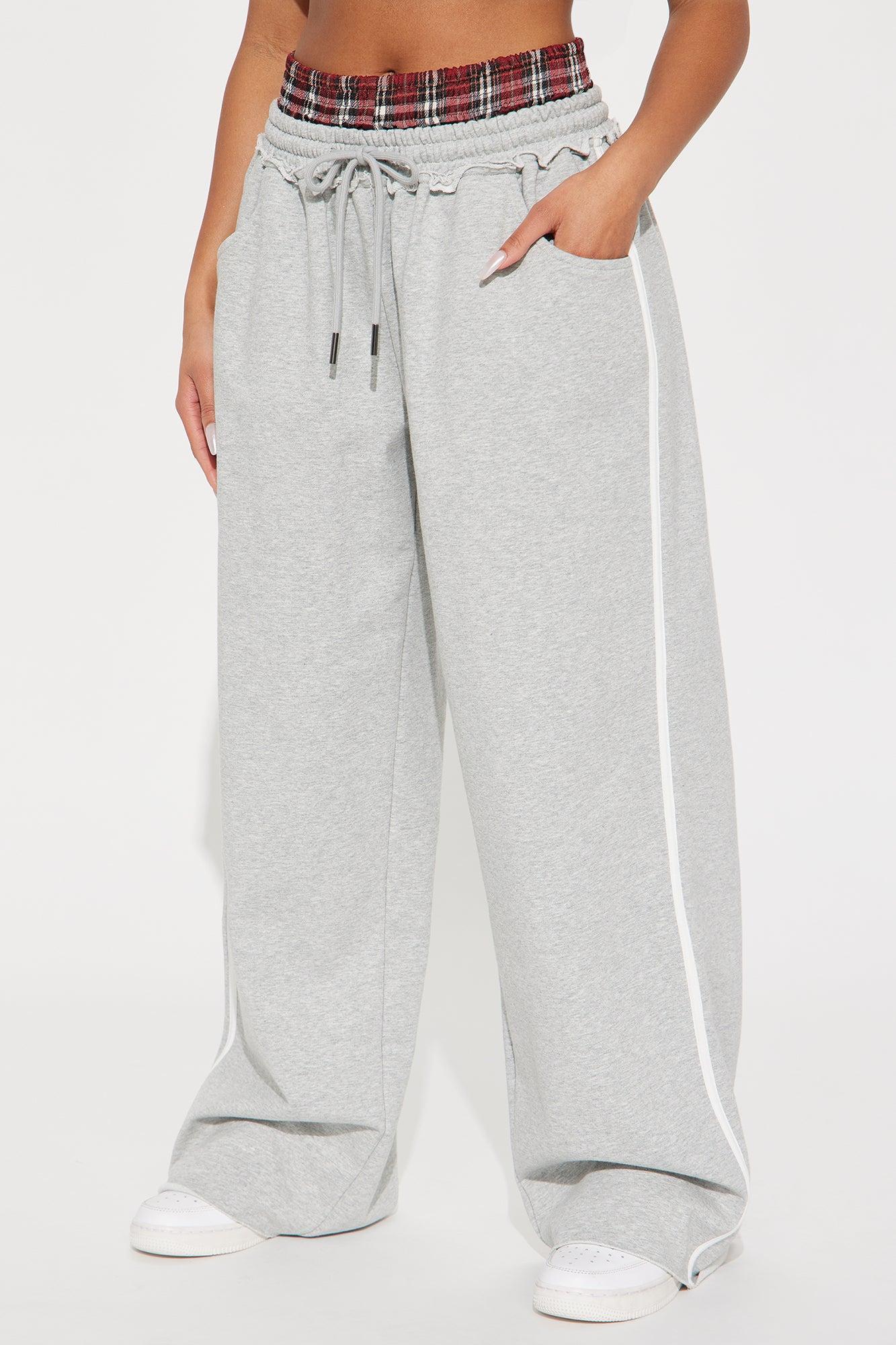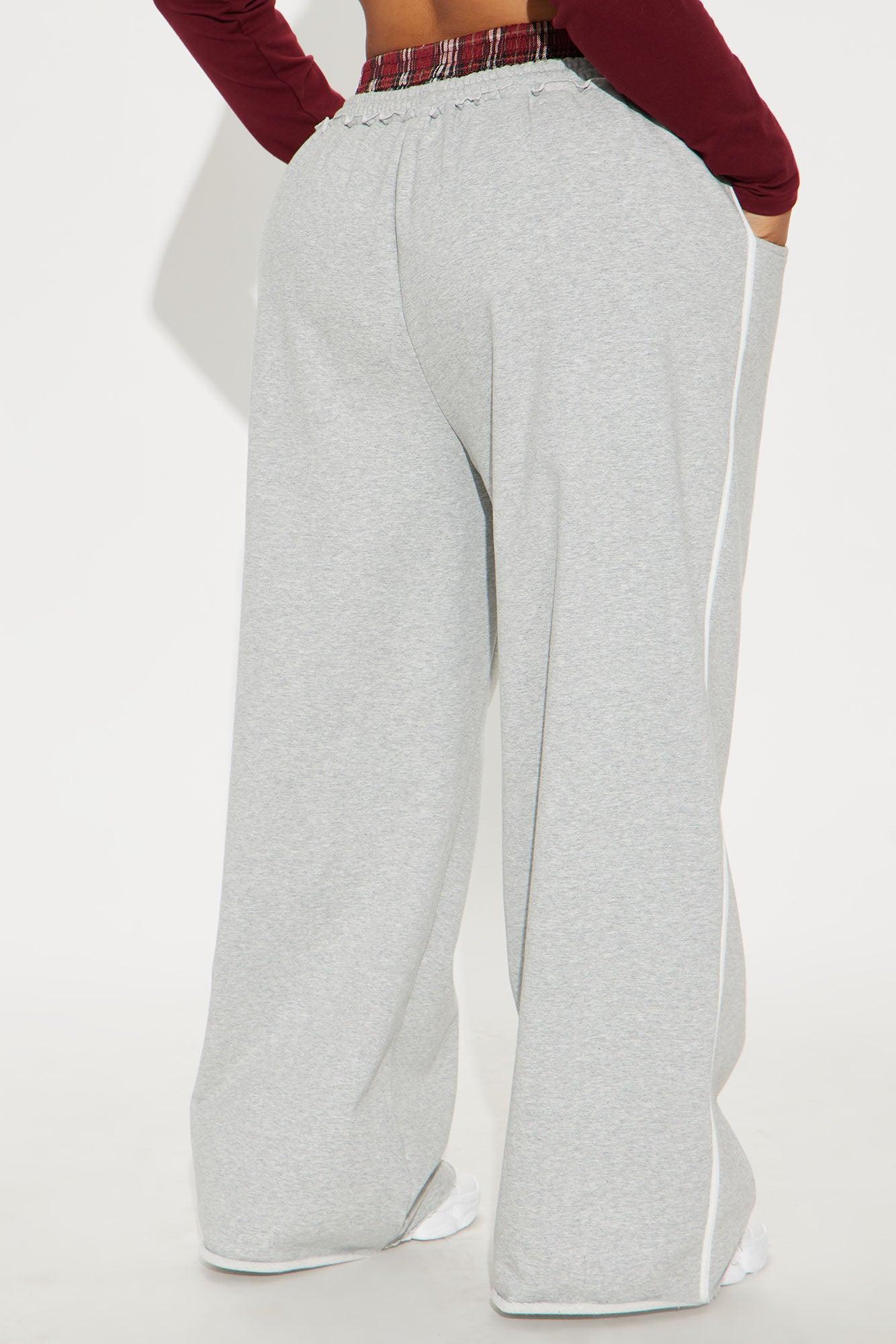 Available In Grey/combo. Track Pant High Rise Elastic Waistband Contrast Plaid Double Waistband Drawstring Hand Pockets Side Stripe Wide Leg Stretch 31" Inseam Shell 54% Cotton 46% Polyester Contrast 60% Cotton 40% Polyester Contrast 2 98% Polyester 2% Spandex Imported
