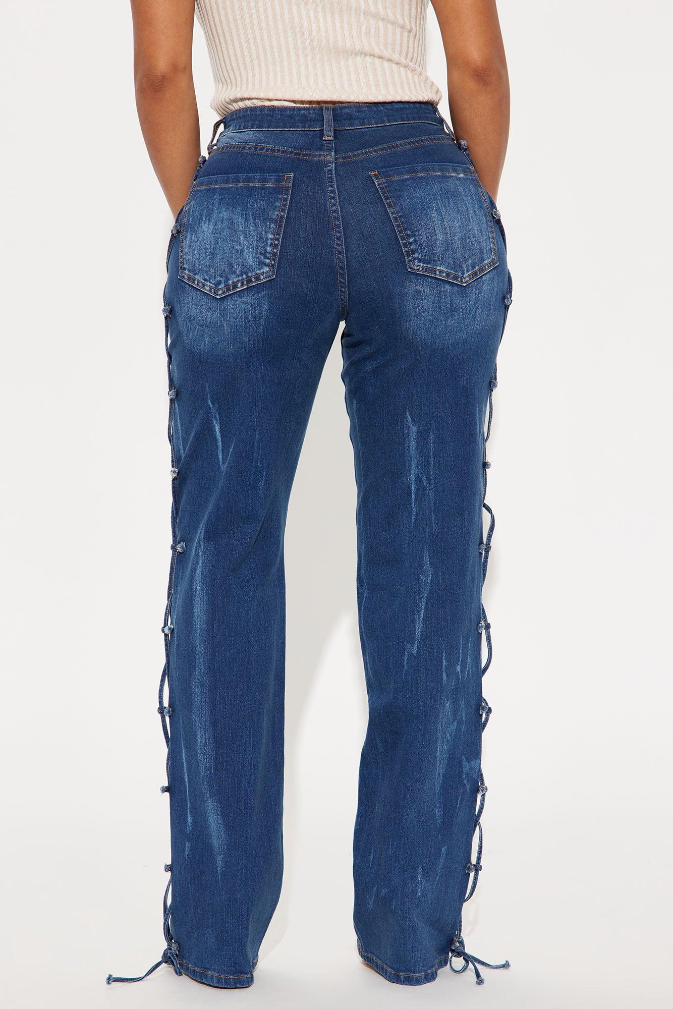 Coming Around Lace Up Stretch Straight Leg Jeans - Dark Wash