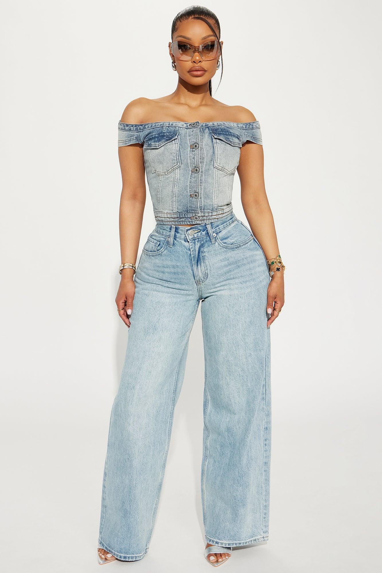 Available In Vintage Wash. Wide Leg Jean 5 Pocket Drop Waist 10.5" Rise 32" Inseam Non Stretch Disclaimer: Due To The Specialized Wash Process, Each Garment Is Unique. 100% Cotton Imported