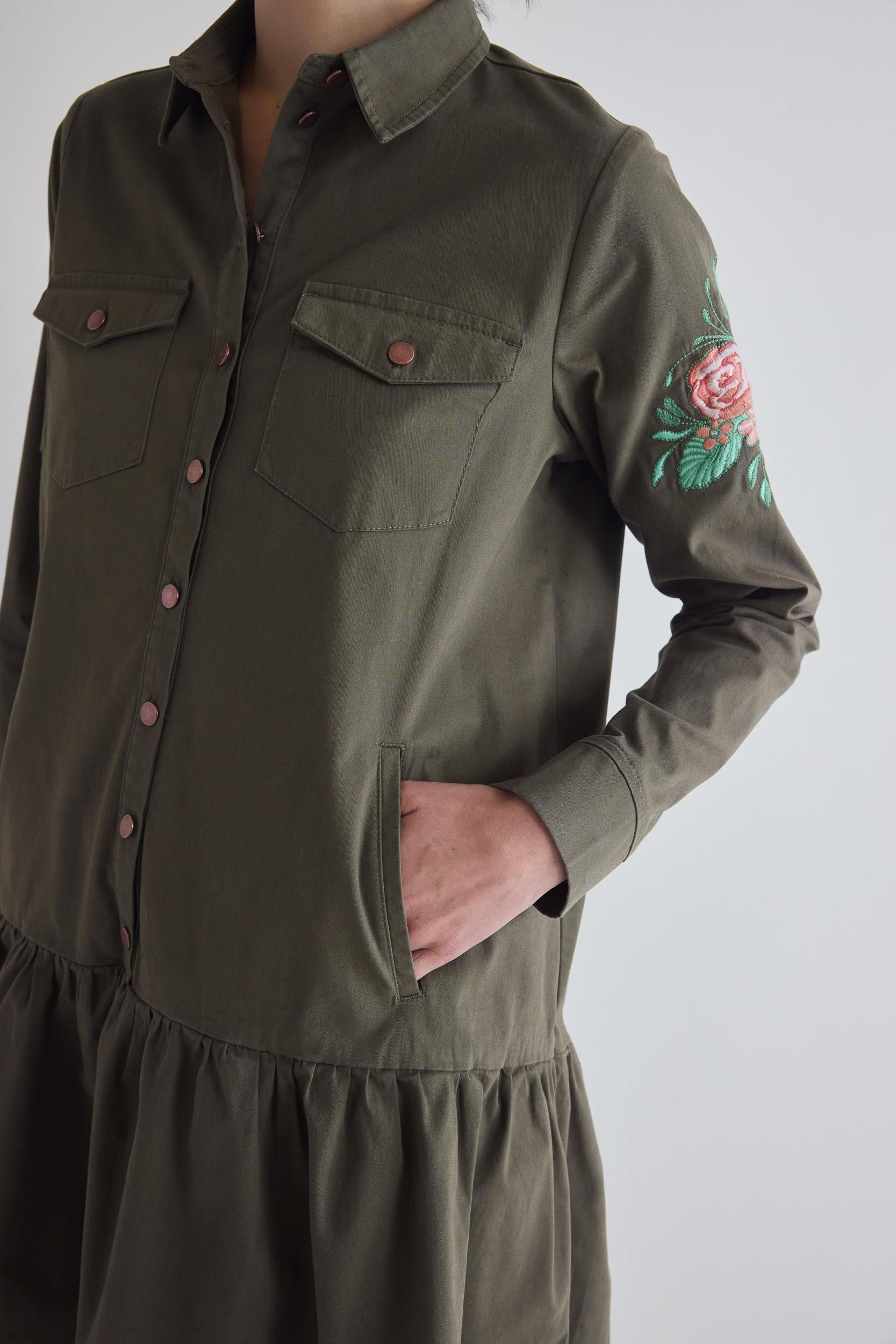 Crafted from premium twill fabric, this dress boasts a luxurious feel and a structured yet flowing silhouette. The exquisite twill weave adds depth and texture, enhancing the overall allure of this stunning piece.