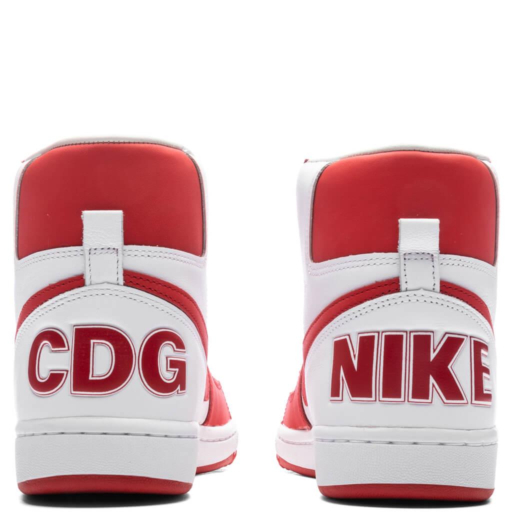 Comme des Garcons Homme Plus collides with Nike on the iconic 1985 Terminator High silhouette. Taking on a leather upper with contrasting leather overlays, the silhouette utilizes a padded and high-top collar for added comfort. Perforations reside at the toe box, while the pronounced pull tab offers a dimensional touch. Co-branding from the two brands are seen at the heels, while the co-branded insoles make an additional appearance. The rubber outsole underneath wraps up the remainder of the design. DUE TO THE NATURE OF THIS PRODUCT, ALL SALES ARE FINAL. Leather upper Lace-up front Padded/high-top collar Perforated toe box Pronounced pull tab Co-branded insole Co-branded heel Rubber outsole All sizes are listed in U.S. Men’s sizing unless stated otherwise Style No: FD4159-102