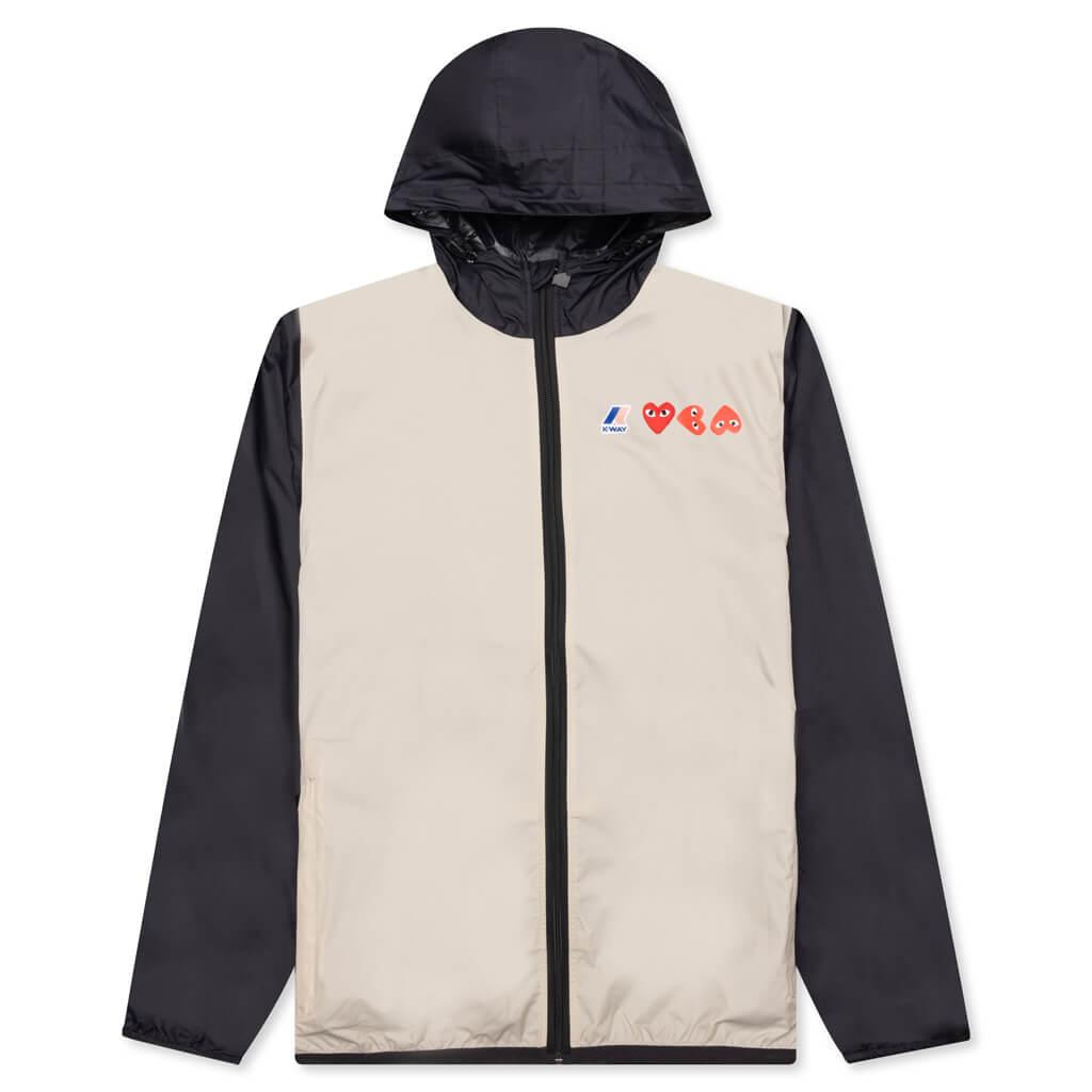 K-Way is renowned for pioneering the first ever windproof and waterproof packable jacket. Their recent collaboration with fashion house Comme des Garçons PLAY brings a unique interpretation to the Full Zip Jacket. Crafted entirely from nylon, this iconic design features an embroidered front logo and boasts waterproof, water-repellent, and windproof properties. The packable silhouette also incorporates heat-taped seams, an adjustable hood with elastic cord, a full-zip closure, and rear ventilation. 100% nylon Regular fit Embroidered branding Waterproof Water-repellent Windproof Ripstop detailing Heat-taped seams Elastic cord hood Zip closure Style No: AZ-J505-051-3 AZ-J505-051-3