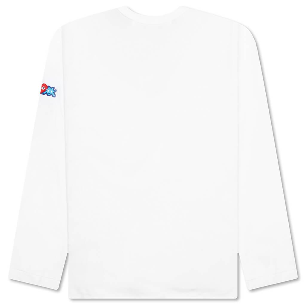 The Comme Des Garçons PLAY x The Artist Invader collection expands as they introduce the long sleeve Tee. Composed of 100% cotton, the signature embroidered pixelated red heart motif is placed on the sleeve. A crew neckline and straight hem wrap up the look. 100% cotton Crew neckline Embroidered motif Straight hem Style No: AZ-T330-051-3