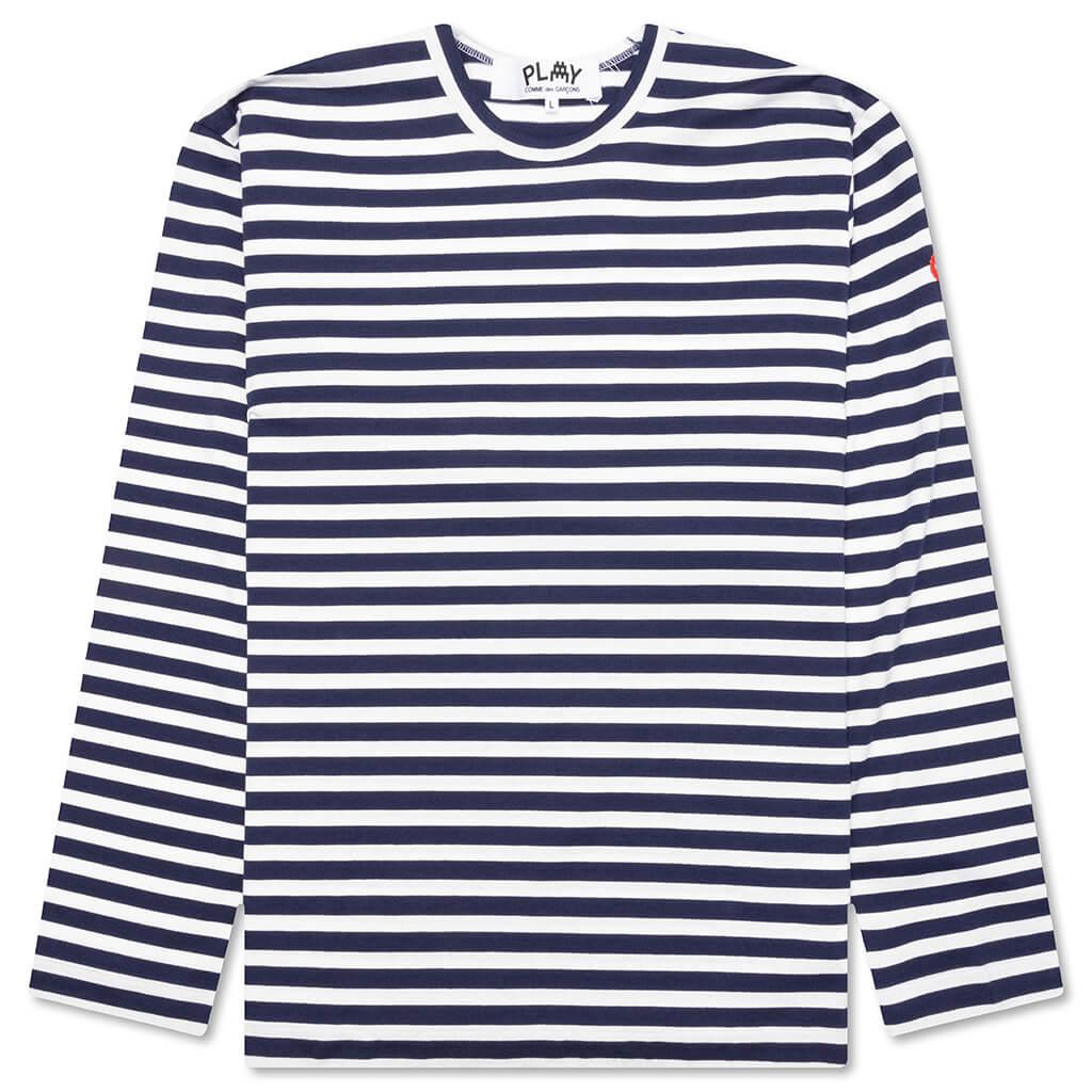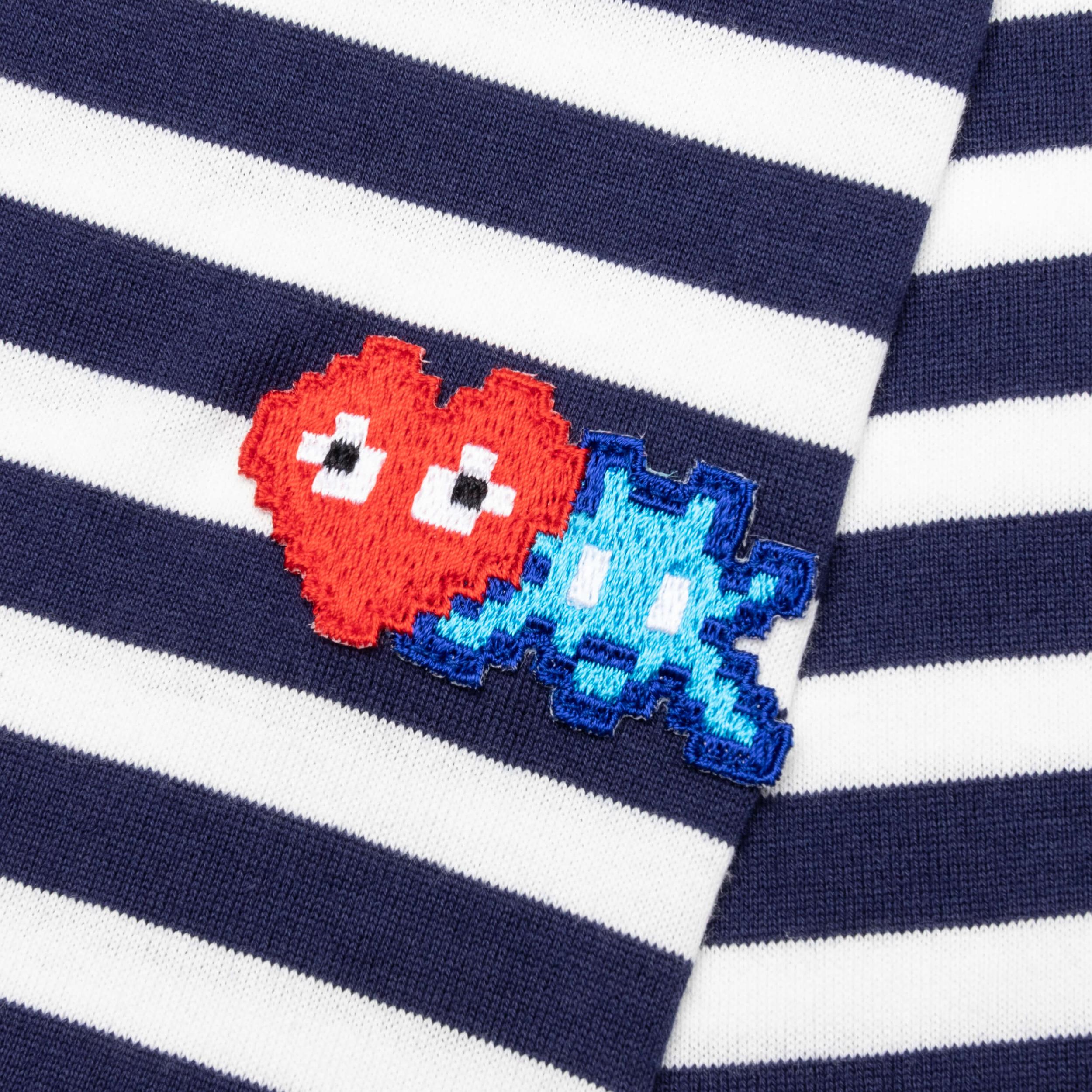 The Comme Des Garçons PLAY x The Artist Invader collection expands as they introduce the Striped long sleeve Tee. Composed of 100% cotton, the design has horizontal stripes throughout, and the signature embroidered pixelated red heart motif is placed on the sleeve. A crew neckline and straight hem wrap up the look. 100% cotton Crew neckline Striped pattern Embroidered motif Straight hem Style No: AZ-T332-051-1