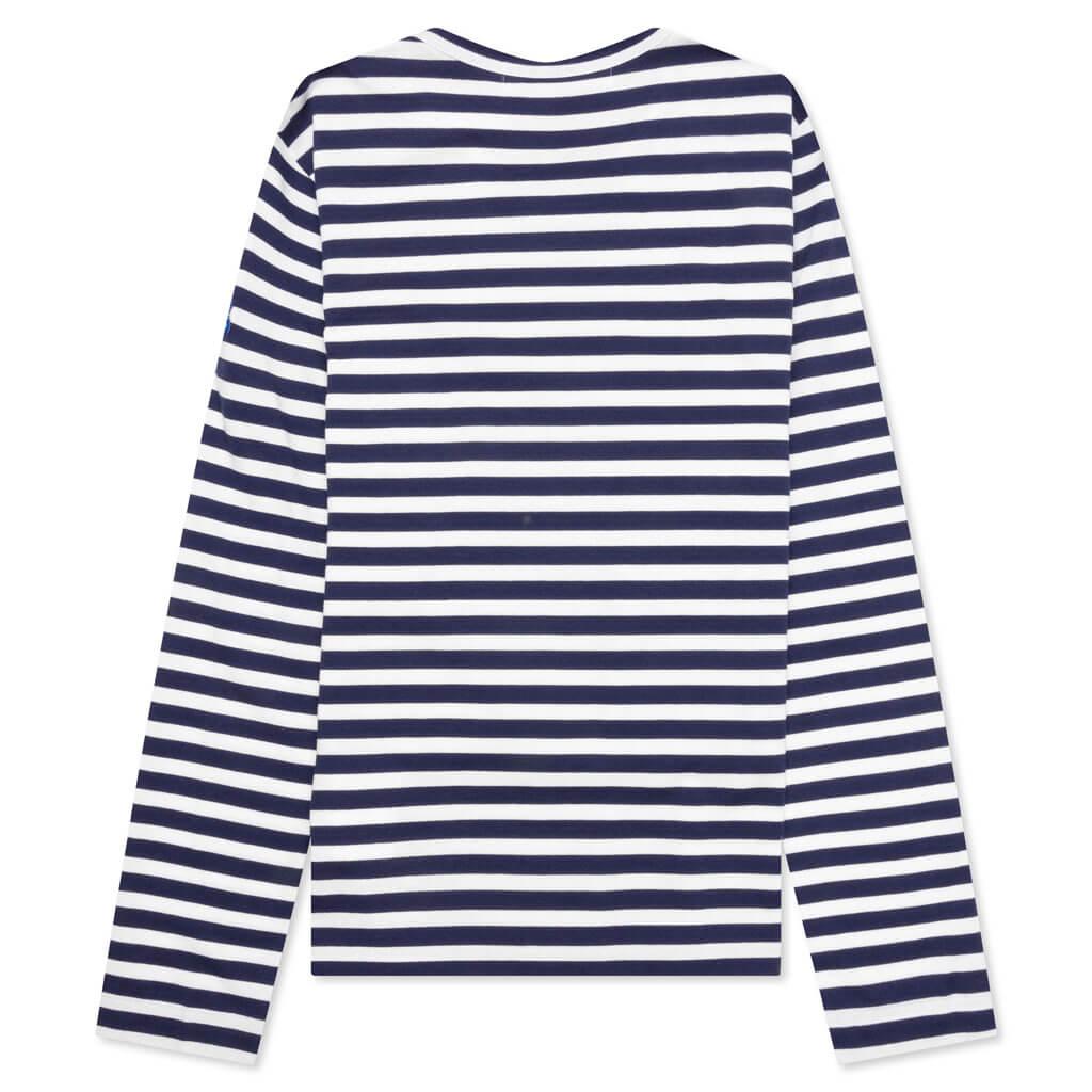 The Comme Des Garçons PLAY x The Artist Invader collection expands as they introduce the Striped long sleeve Tee. Composed of 100% cotton, the design has horizontal stripes throughout, and the signature embroidered pixelated red heart motif is placed on the sleeve. A crew neckline and straight hem wrap up the look. 100% cotton Crew neckline Striped pattern Embroidered motif Straight hem Style No: AZ-T331-051-1