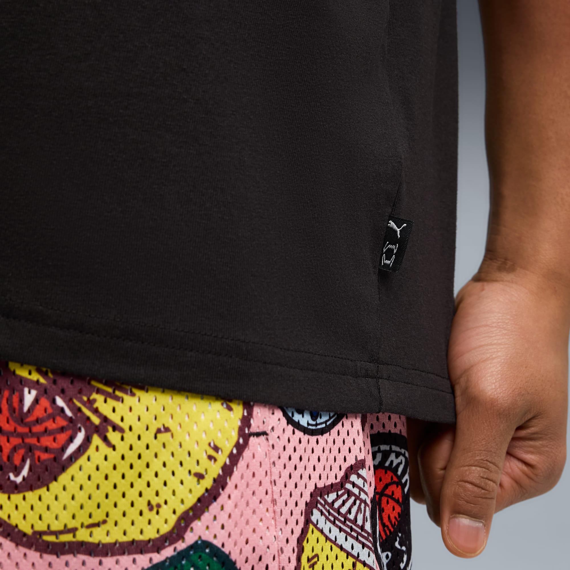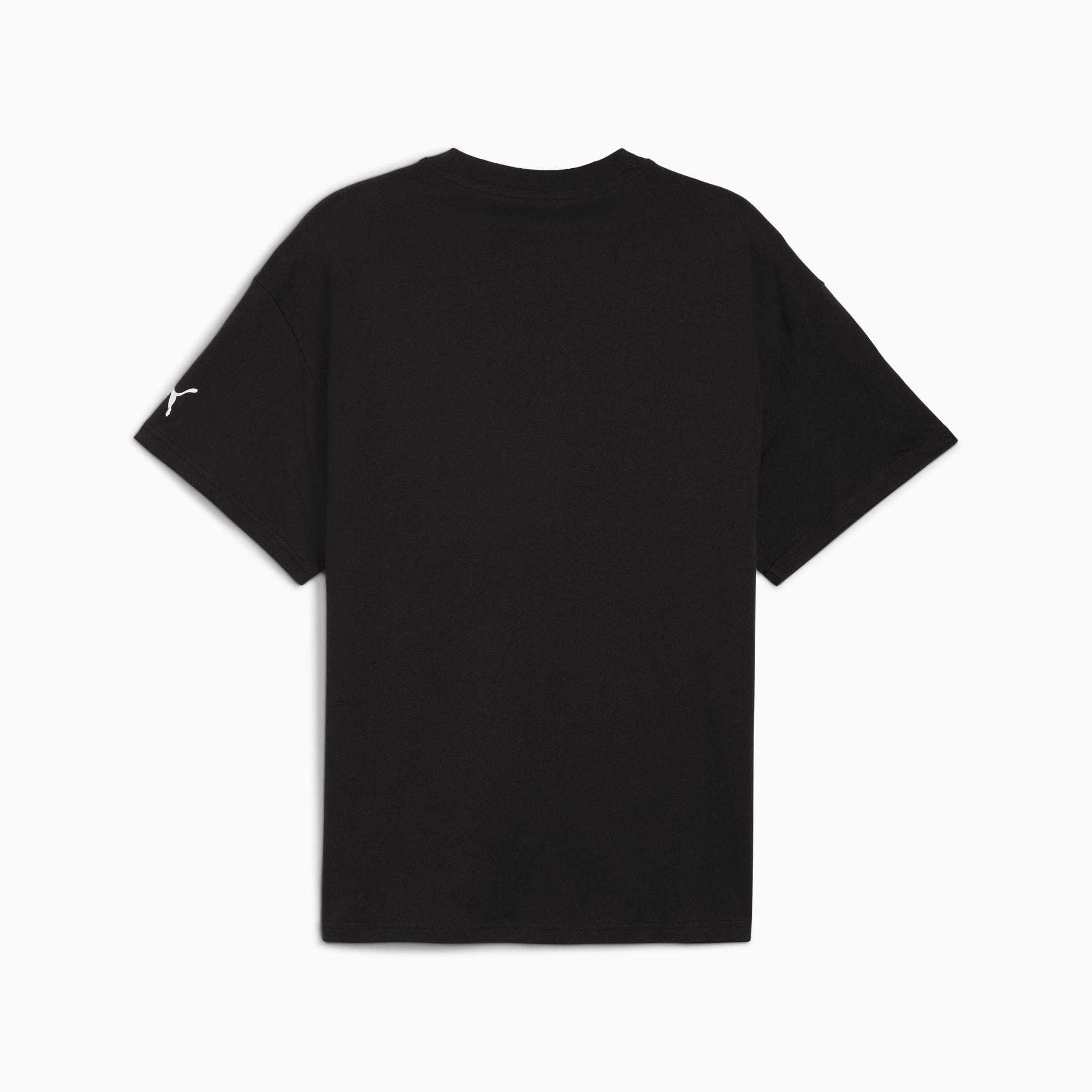 descriptionBring your A-game on and off the court with our basketball lifestyle pieces. Easy-to-wear essentials like hoodies, jerseys, tees, and sweatpants get a fresh update with bold graphics and details inspired by our love for the game. Whether it's warm-ups, post-game, or everyday wear, these pieces are designed to make a statement.Style: 632823_01Color: PUMA Blackmeasure & sizeModel informationModel is 5' 11" tall and is wearing size M.features & benefitsMade with at least 20% recycled cotton.detailsFit: OversizedMain material: Single jerseyNeck: Crew neckShort sleevesLength: Regularmaterials & careMaterial informationShell: 100% cottonRib: 70% cotton, 30% polyesterCare instructionsWash and iron inside outTumble dry inside outExclusive of DecorationUse detergent for coloursWash with similar coloursDo not iron printUse only mild detergentDo not dry clean