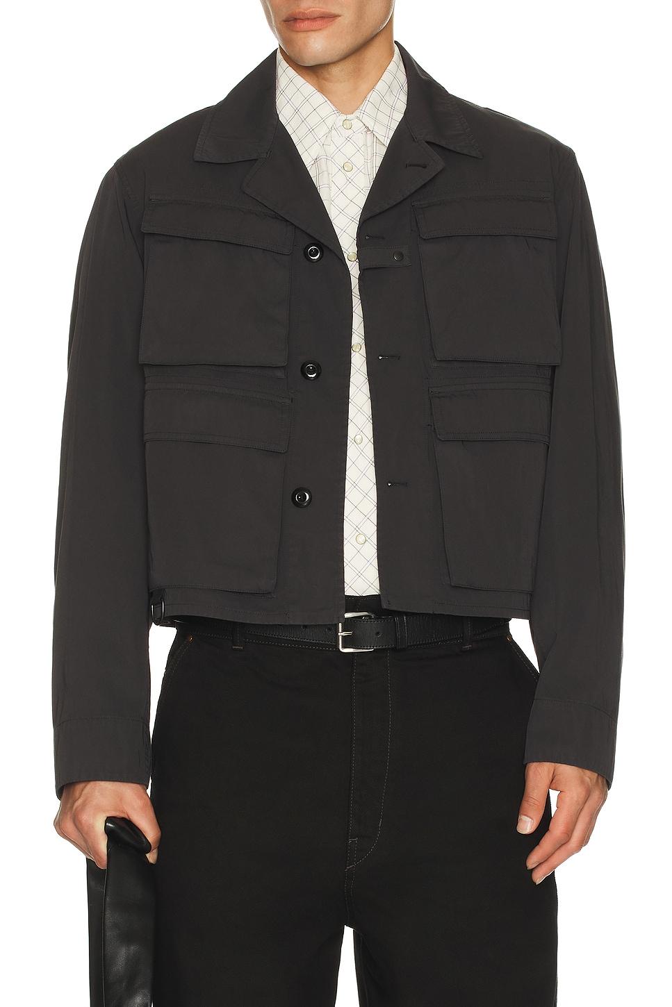 utility jacket100% cotton / Dry clean only / Front button closure / Button cuffs / 4-pocket styling / Midweight twill fabric / Made in Italy / Our Style No. LEMF-MO28 / Manufacturer Style No. OW1175 LF1481 BK996 / Model is wearing size 48.