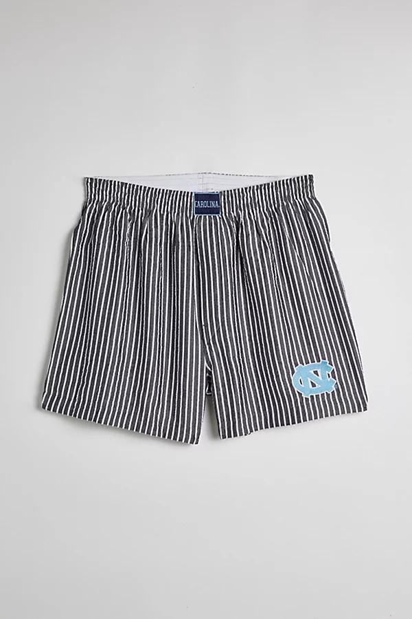 University Of North Carolina woven boxers by Concepts Sport. Cotton boxer shorts with an allover stripe pattern and team logo text. Relaxed fit with a stretch elastic waistband. Features Concepts Sport University Of North Carolina woven boxer shorts Stripe pattern cotton boxers Elastic waistband Content + Care Includes 1 pair 51% Cotton, 49% polyester Machine wash Imported Size + Fit Inseam: 3.75 Concepts Sport University Of North Carolina Woven Boxer Short in Black, Mens at Urban Outfitters