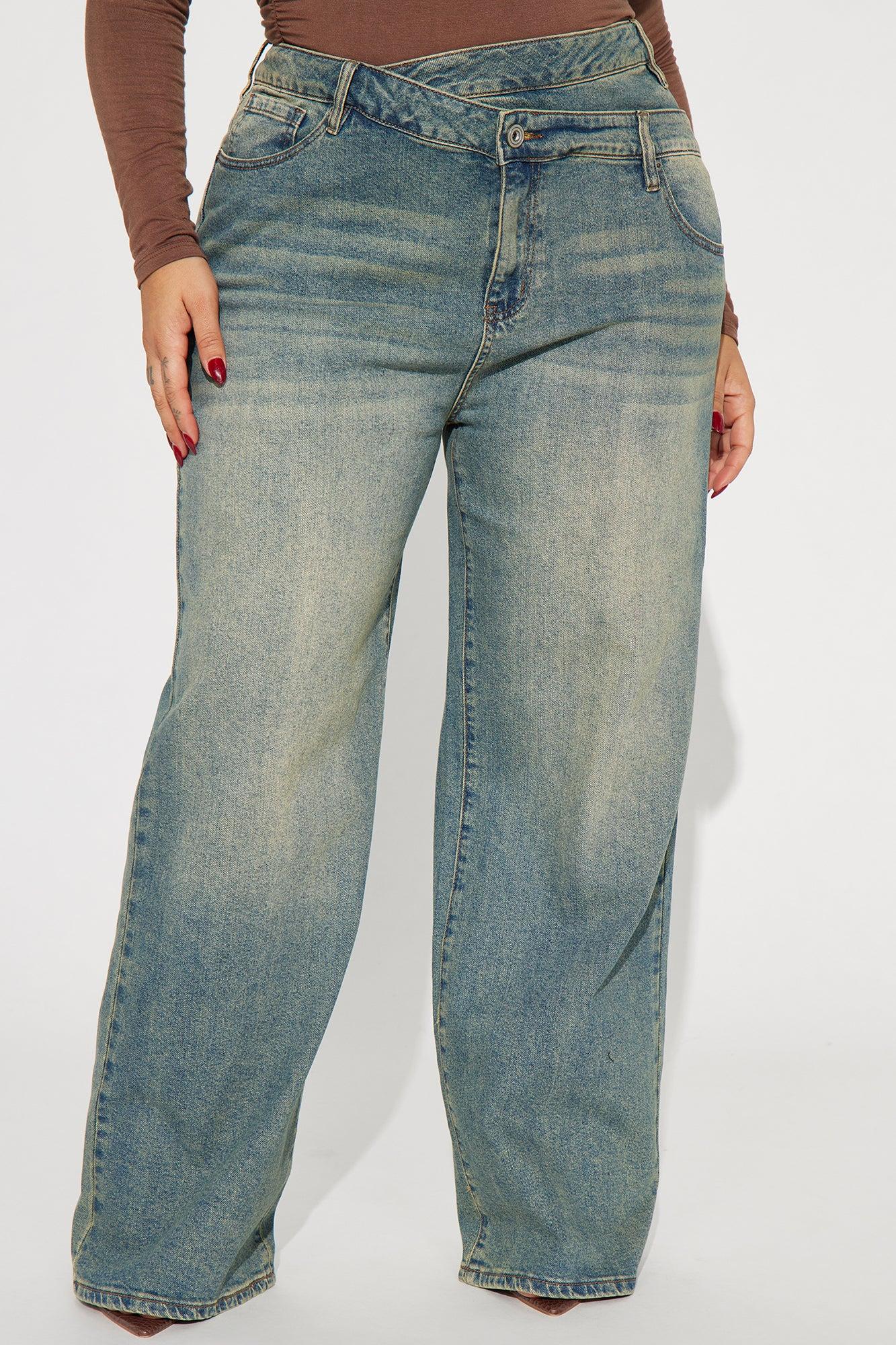 Available In Vintage Blue Wash. Straight Leg Jean Loose Fit Crossover Waistband Tinted 5 Pocket Drop Waist 11.5" Rise 32" Inseam Low Stretch Disclaimer: Due To The Specialized Wash Process, Each Garment Is Unique. Self: 99% Cotton 1% Spandex Imported California Proposition 65WARNING: Cancer and Reproductive Harm - www.P65Warnings.ca.gov.