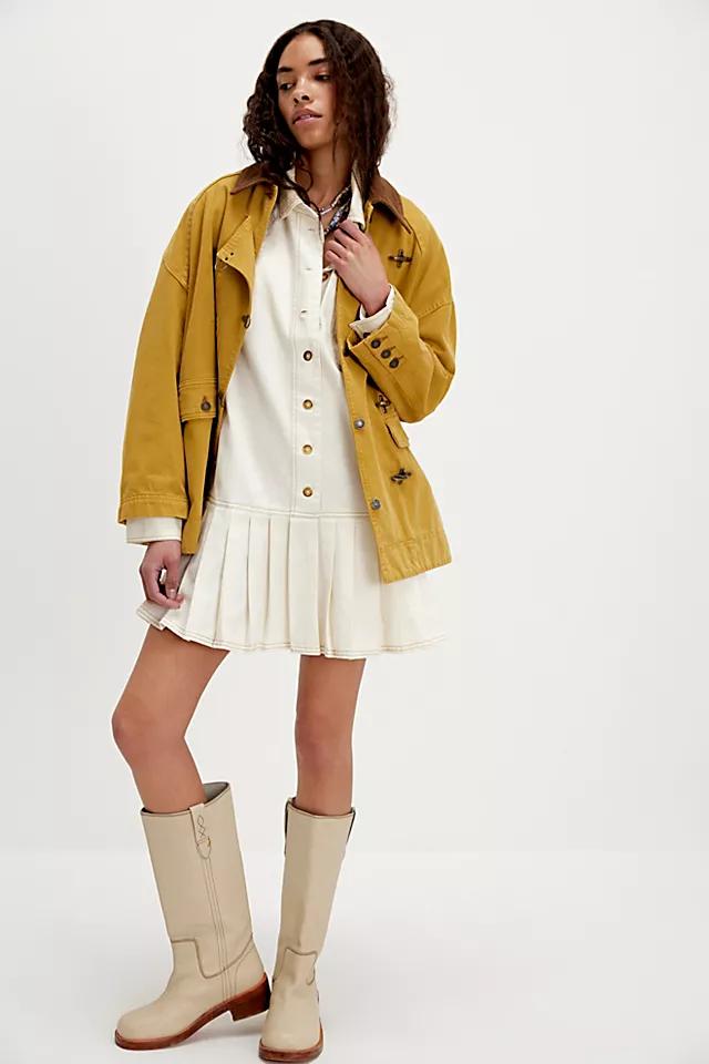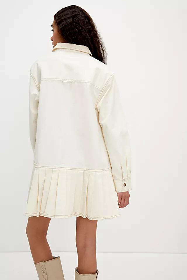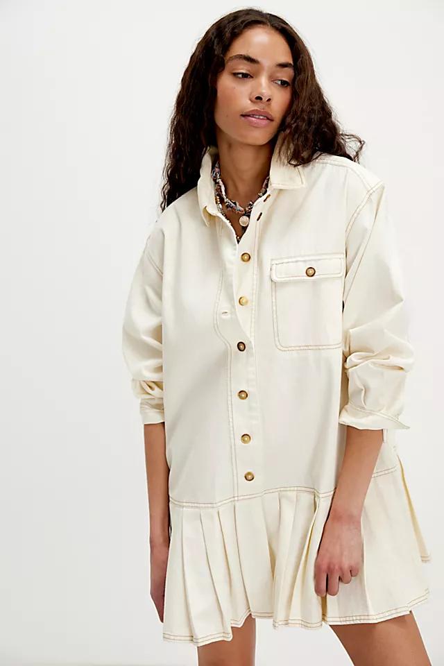 The true definition of an effortless essential, this super cool mini dress is featured in a button-front silhouette with classic collar, pleated dropped skirt, and structured yet soft cotton fabrication for a forever staple finish.