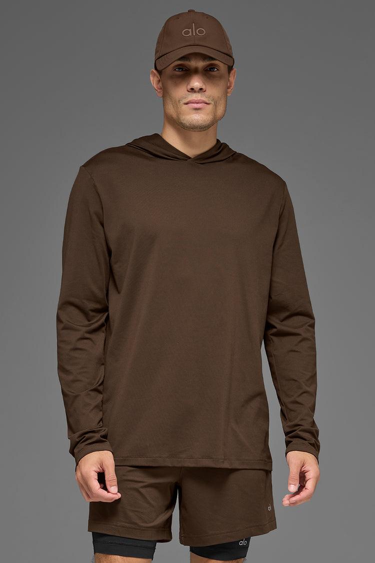 A go-anywhere, do-anything training essential. Complete with 4-way stretch and a lightweight pullover hood, the moisture-wicking Conquer Reform Long Sleeve With Hood is cool and comfortable when paired with performance shorts or sweats. Super-soft, sueded Conquer fabric 4-way-stretch fabric for a move-with-you feel Designed & uniquely fit for every size Wear-tested by our in-house team for the perfect fit Alo Yoga | Conquer Reform Long Sleeve With Hood Sweatshirt in Espresso, Size: Medium