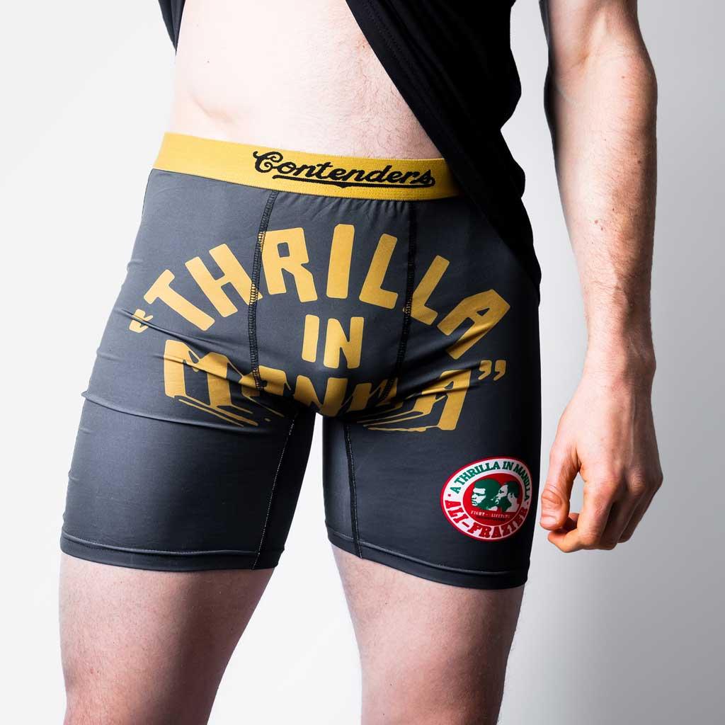Thrilla in Manila was the 3rd and final boxing match between Muhammad Ali and Joe Frazier. On October 1, 1975, Ali and Frazier met for the final time in the Philippine Coliseum in Cubao, Quezon City, Philippines where Ali won by TKO in the 14th round. Every pair of Contenders boxer briefs features Contenders’ exclusive RIDE CONTROLTM – no ride-ups, total comfort, every time. Designed with care in California.