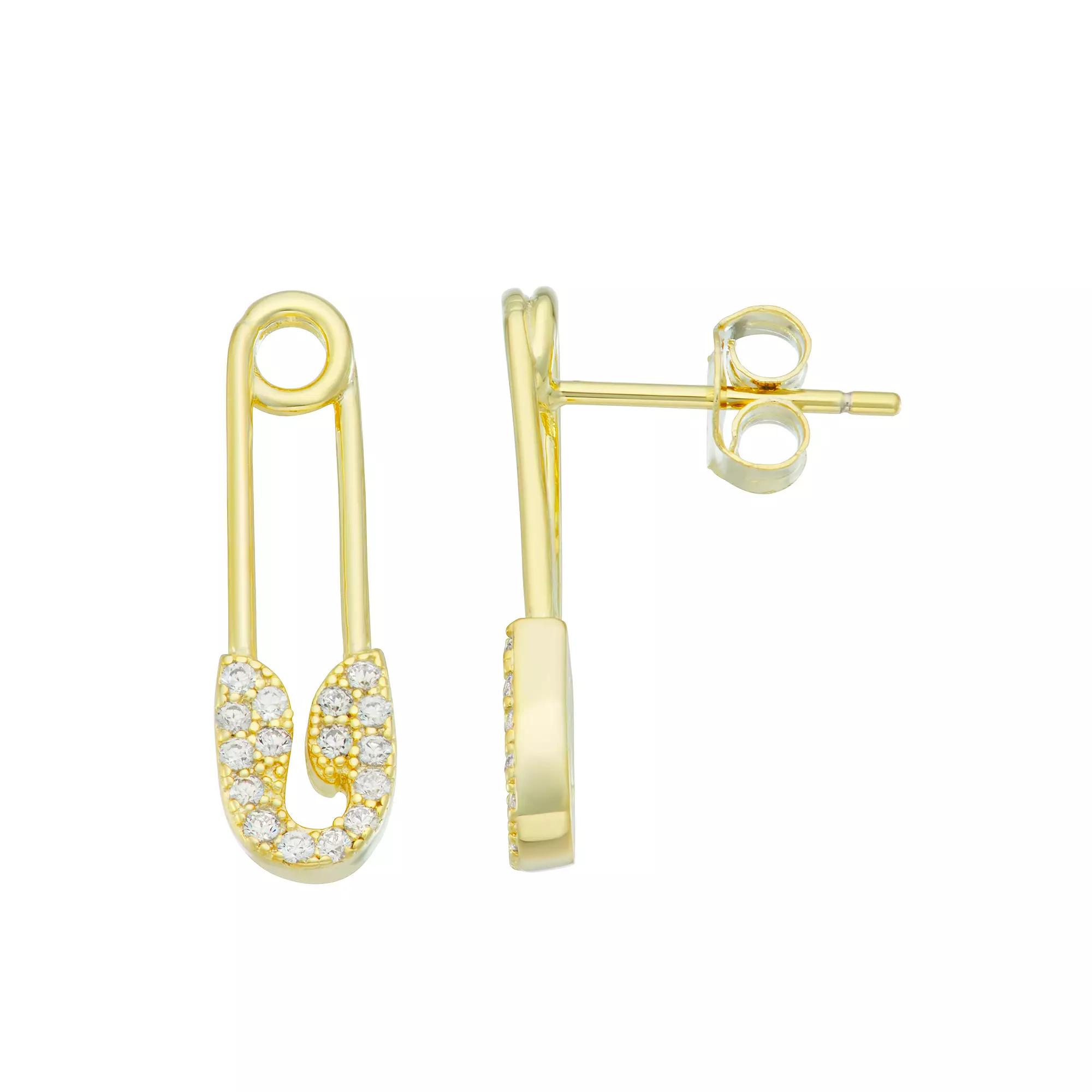 Keep it together with these cute Contessa Di Capri 18k gold over silver safety pin earrings, studded with sparkling cubic zirconia stones. Keep it together with these cute Contessa Di Capri 18k gold over silver safety pin earrings, studded with sparkling cubic zirconia stones. EARRING DETAILS Length: 18 mm Backings: post Metal: sterling silver Plating: 18k gold flash plated Finish: polished Packaging: boxed Nickel freeSTONE DETAILS Stone type: cubic zirconia Total weight: 1/3 ct. Shape: round Setting: pave Gemstones may have been treated to enhance their appearance. Special care may be required. Please visit our Gemstone Treatment & Special Care Guide for more information. Size: One Size. Color: White. Gender: female. Age Group: adult.