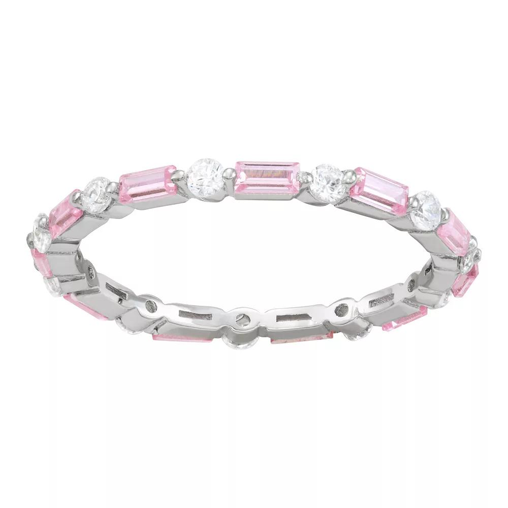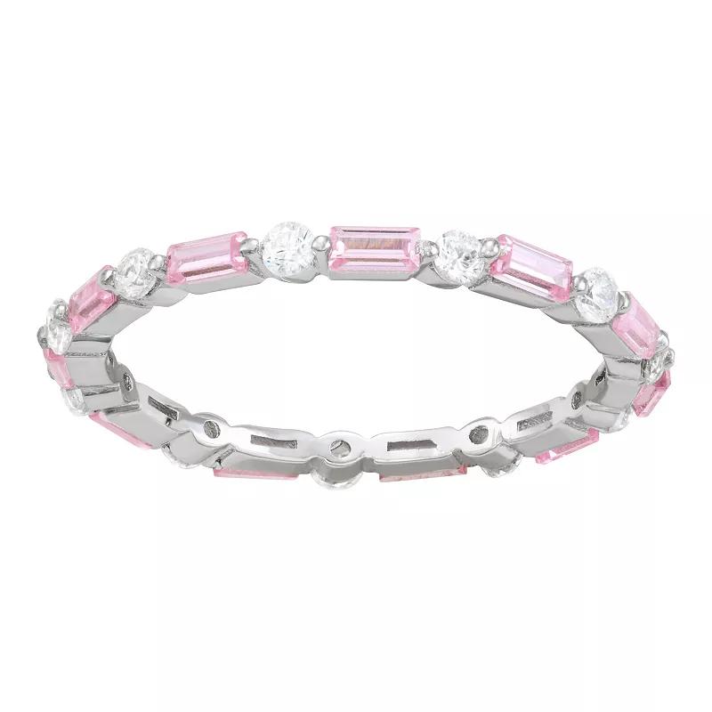 Add a touch of color to any outfit with this Contessa Di Capri cubic zirconia birthstone eternity ring. Add a touch of color to any outfit with this Contessa Di Capri cubic zirconia birthstone eternity ring. Width: 2 mm Nickel free Metal: sterling silver Plating: rhodium Finish: polished Packaging: boxedSTONE DETAILS Total weight: 1 5/8 ct. Shape: rectangle, round Setting: prong Gemstones may have been treated to enhance their appearance. Special care may be required. Please visit our Gemstone Treatment & Special Care Guide for more information. Please note, due to the high value of this item, a signature may be required upon delivery. Size: 9. Color: Pink. Gender: female. Age Group: adult.