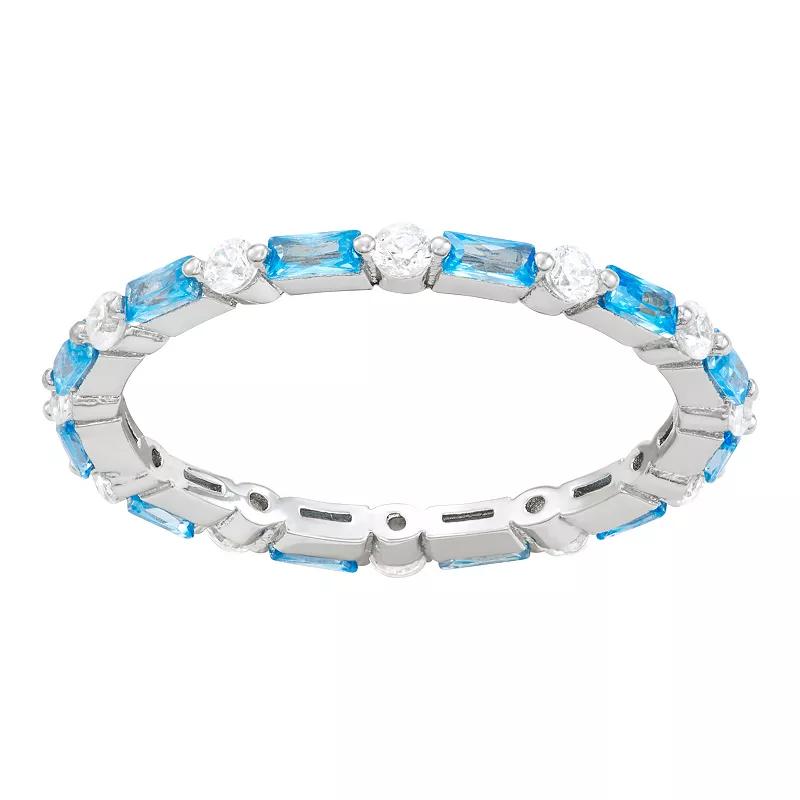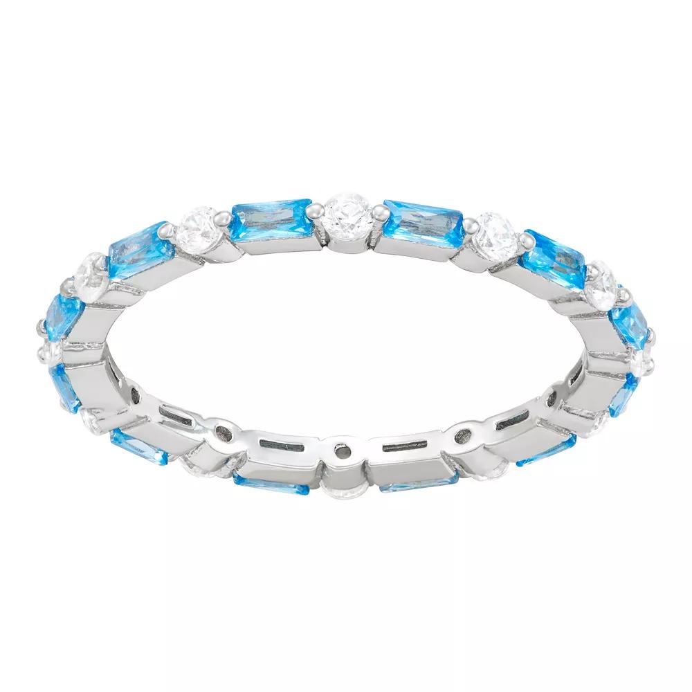 Add a touch of color to any outfit with this Contessa Di Capri cubic zirconia birthstone eternity ring. Add a touch of color to any outfit with this Contessa Di Capri cubic zirconia birthstone eternity ring. Width: 2 mm Nickel free Metal: sterling silver Plating: rhodium Finish: polished Packaging: boxedSTONE DETAILS Total weight: 1 5/8 ct. Shape: rectangle, round Setting: prong Gemstones may have been treated to enhance their appearance. Special care may be required. Please visit our Gemstone Treatment & Special Care Guide for more information. Please note, due to the high value of this item, a signature may be required upon delivery. Size: 6. Color: Blue. Gender: female. Age Group: adult.