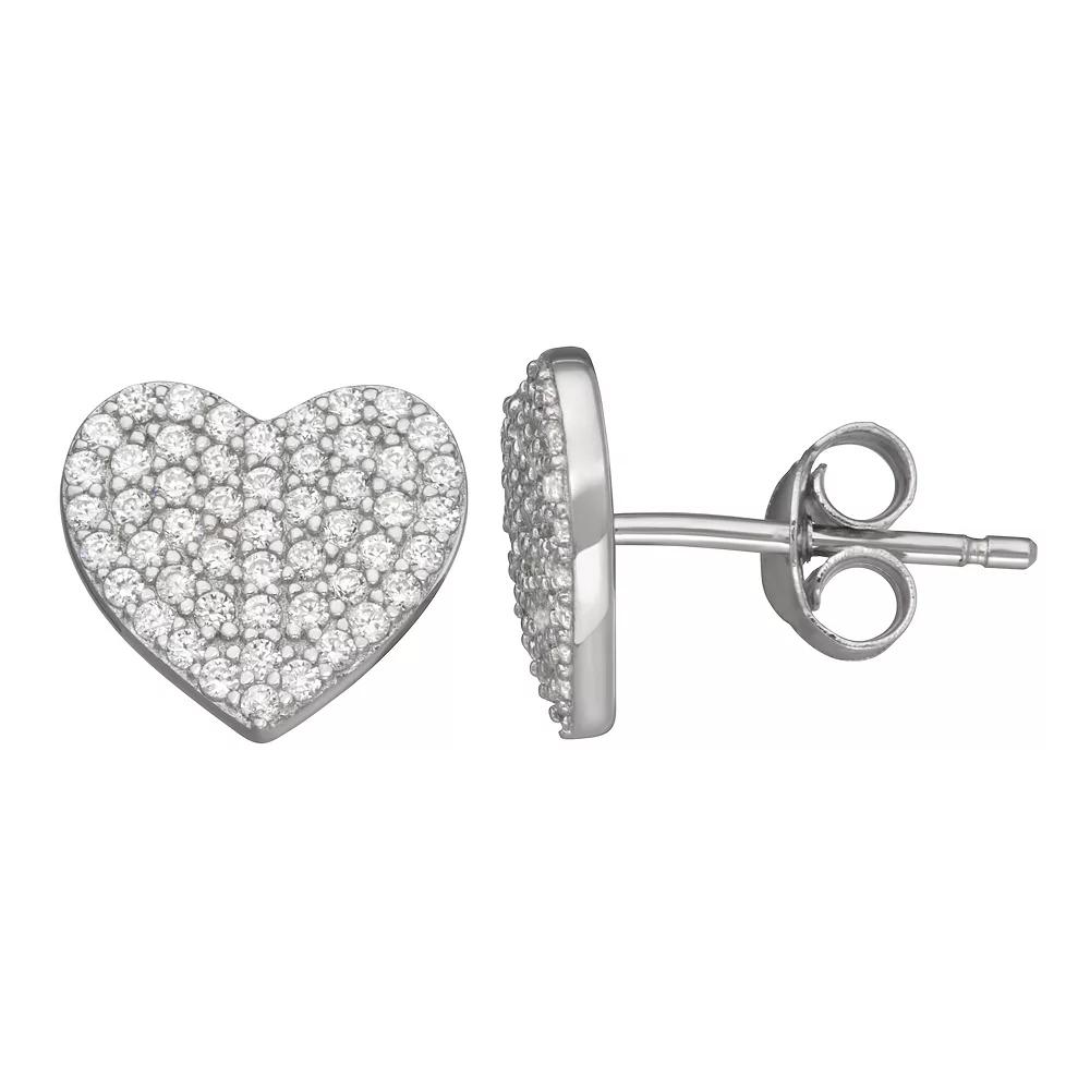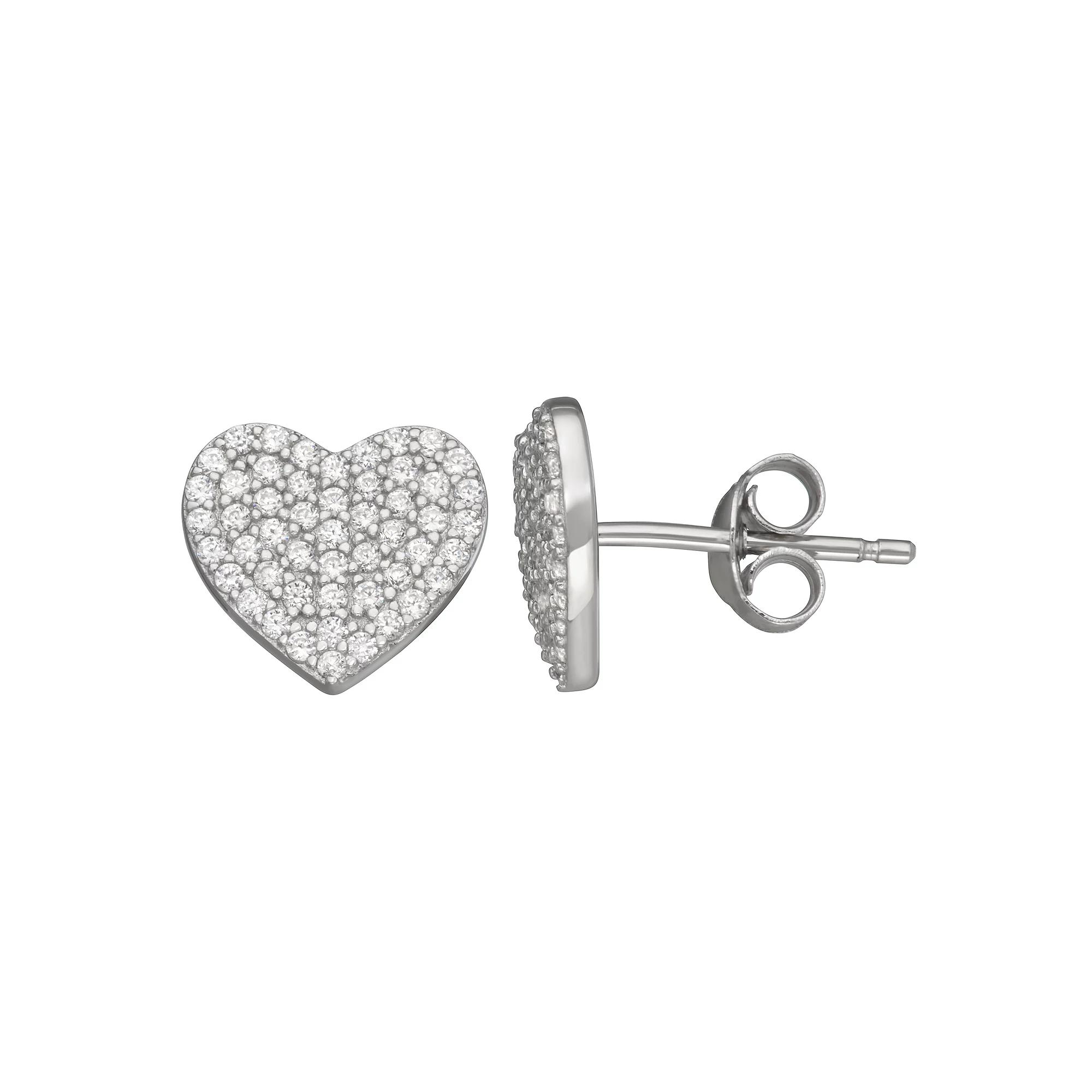 Dress to dazzle when you wear a pair of these Contessa Di Capri cubic zirconia pave heart stud earrings. Dress to dazzle when you wear a pair of these Contessa Di Capri cubic zirconia pave heart stud earrings. Length: 10 mm Backings: post Nickel free Metal: sterling silver Plating: rhodium Finish: polished Packaging: boxedSTONE DETAILS Stone type: cubic zirconia Total weight: 1 ct. Shape: round Setting: pave Gemstones may have been treated to enhance their appearance. Special care may be required. Please visit our Gemstone Treatment & Special Care Guide for more information. Please note, due to the high value of this item, a signature may be required upon delivery. Size: One Size. Color: White. Gender: female. Age Group: adult.