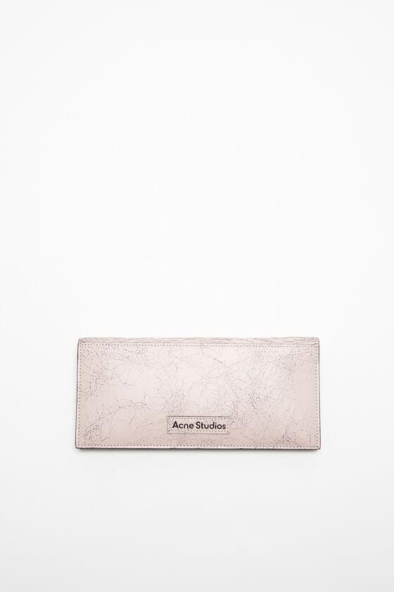 Large wallet is crafted from leather with a cracked finish, detailed with an Acne Studios logo patch. Complete with a decorative mirror engraved with 'you are beautiful' inside the wallet, card holder compartments, and a larger zippered compartment. Includes a chain, dog clip and ring for attachments. FN-UX-SLGS000270