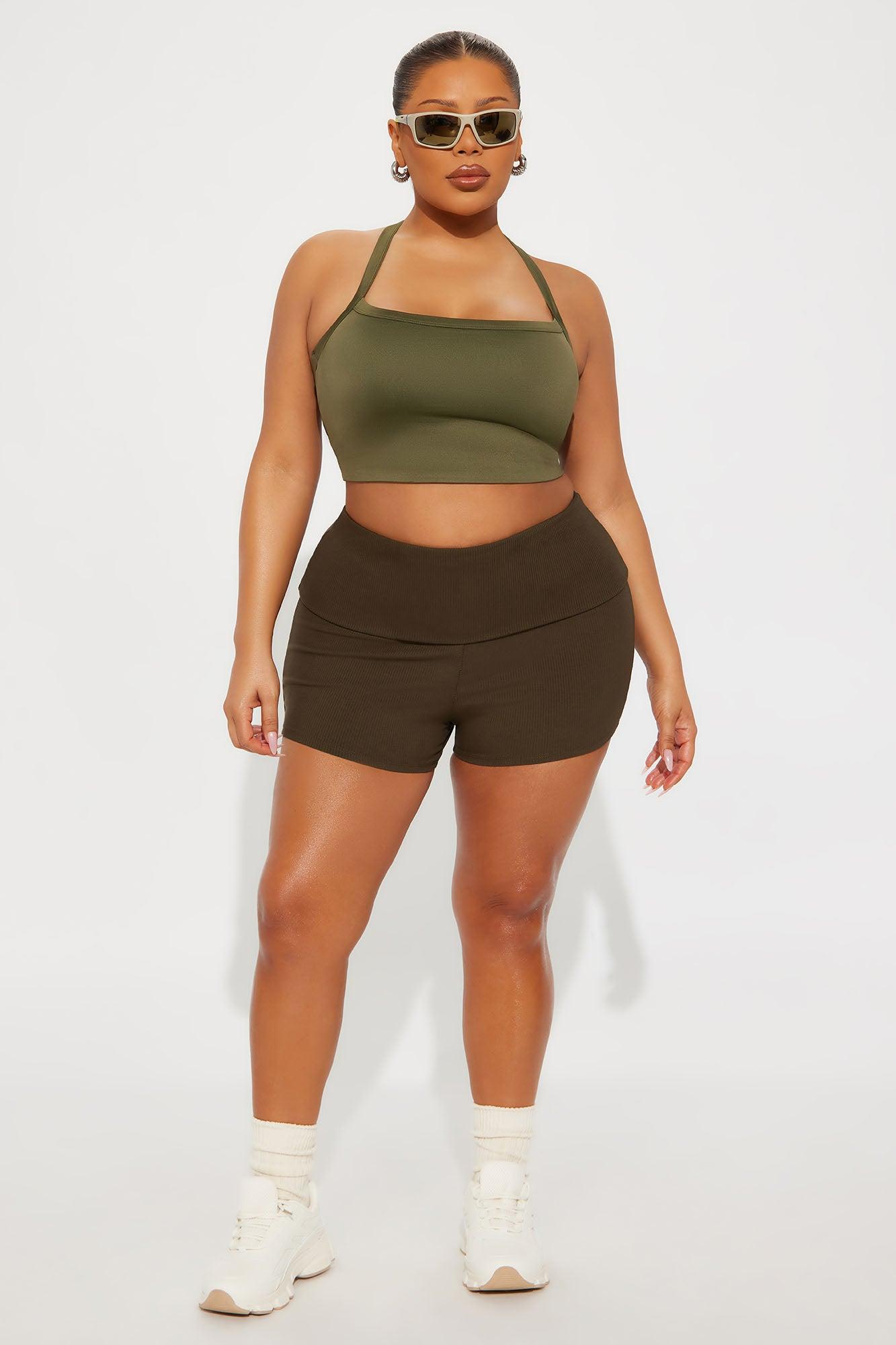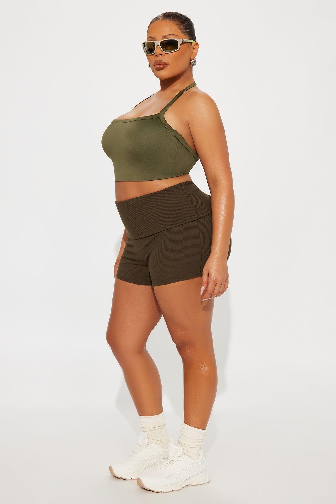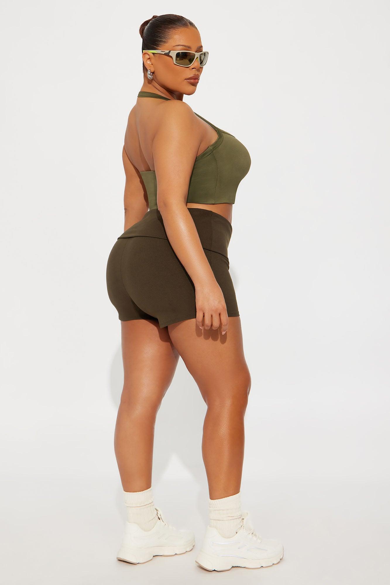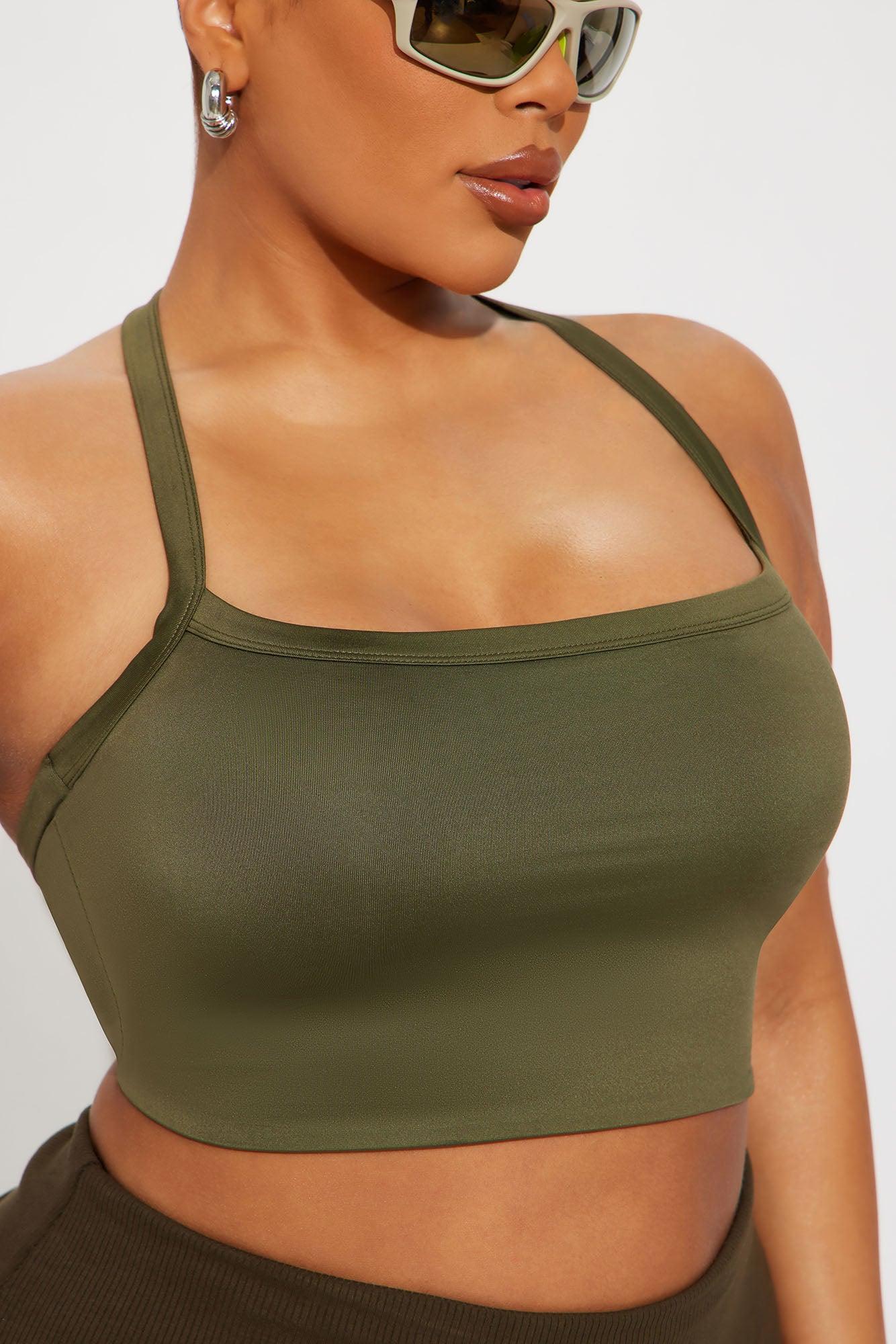 Contour Double Lined Cropped Halter Top - Military Green Female