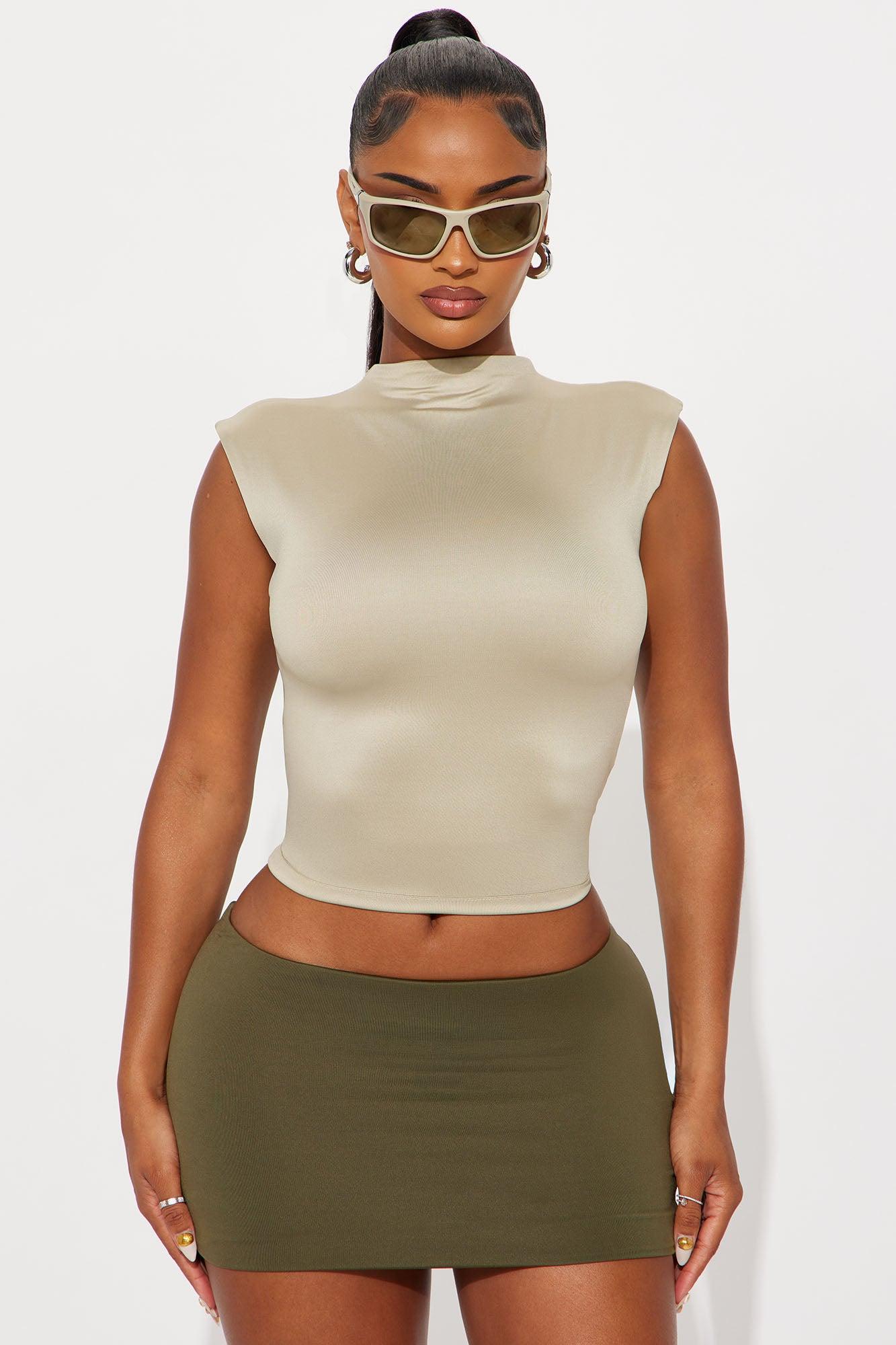 Contour Double Lined Mock Neck Top - Stone Female