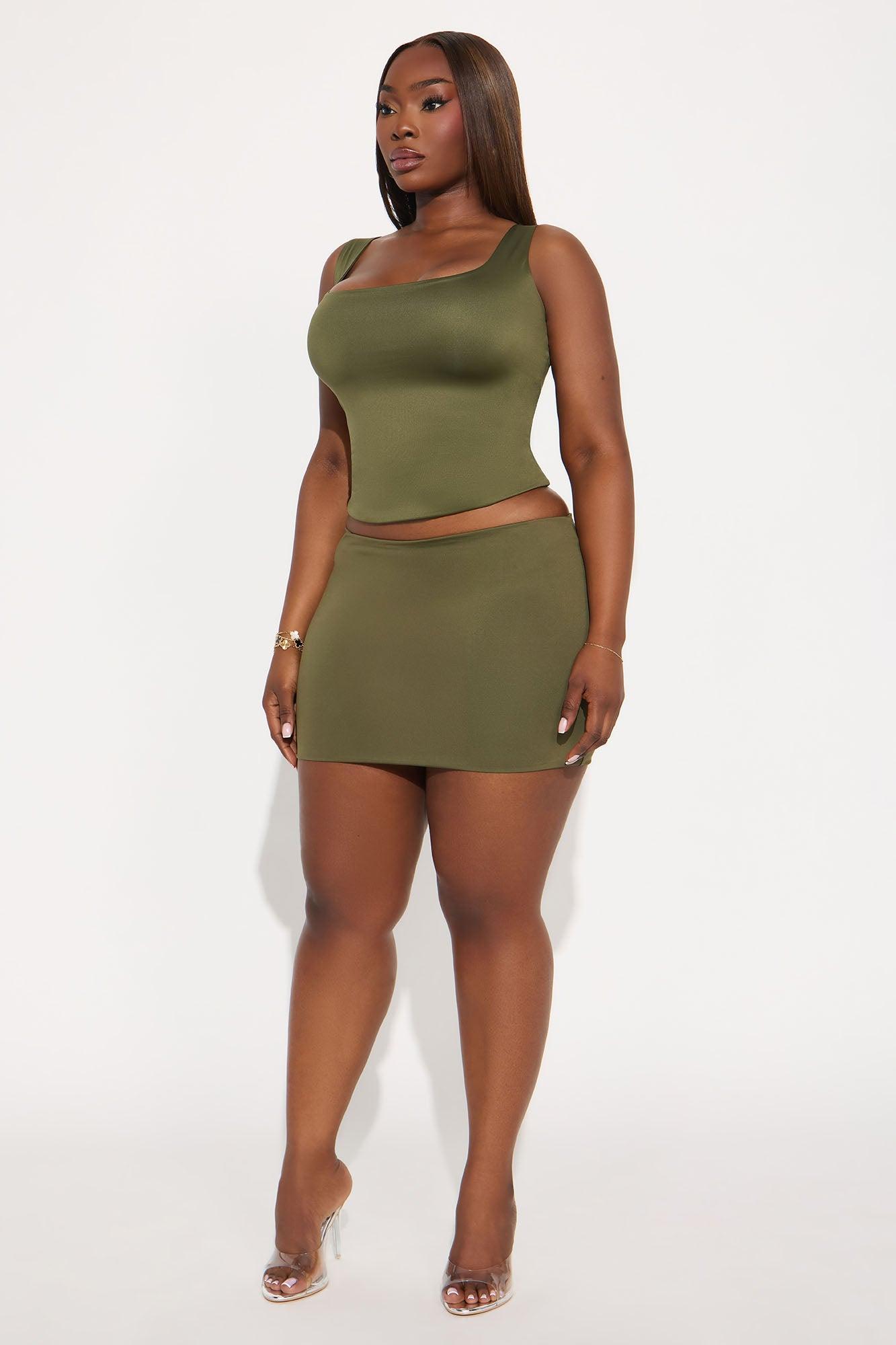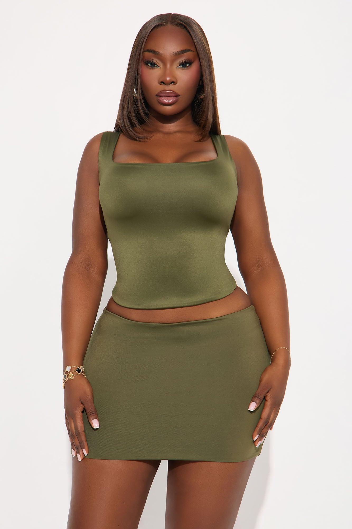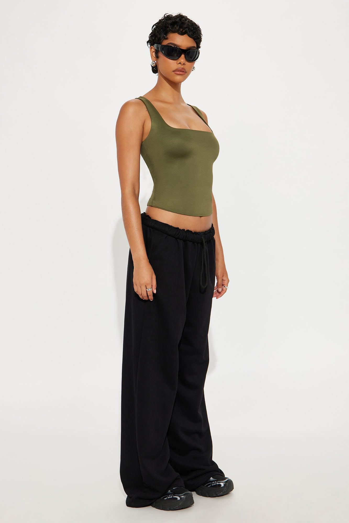 Contour Double Lined Square Neck Tank Top - Military Green Female