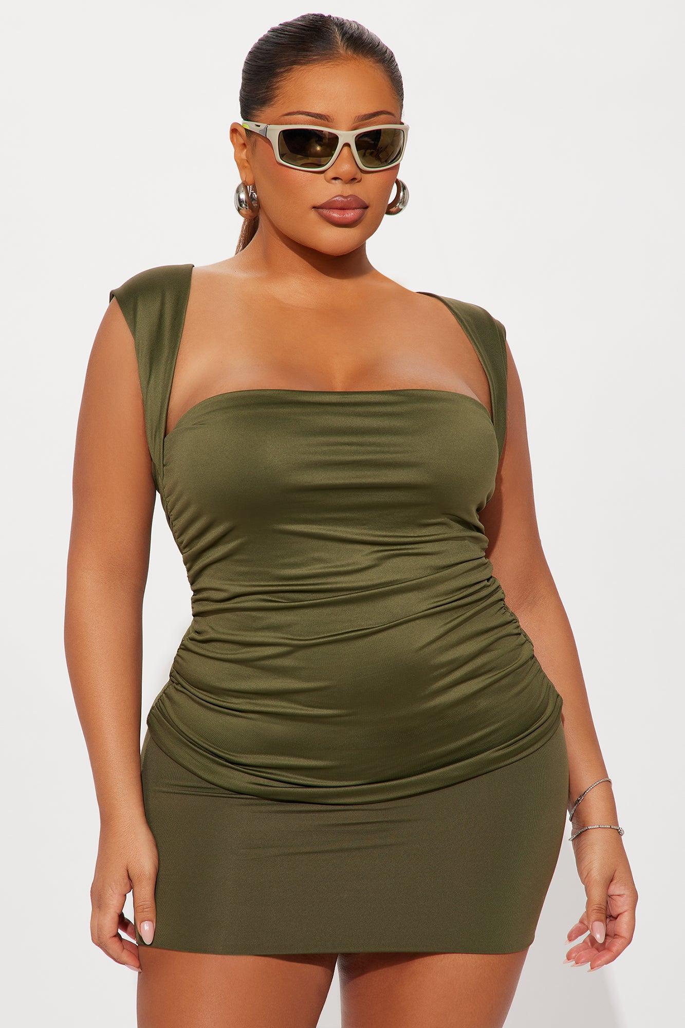 Contour Double Lined Straight Neck Tank Top - Military Green Female