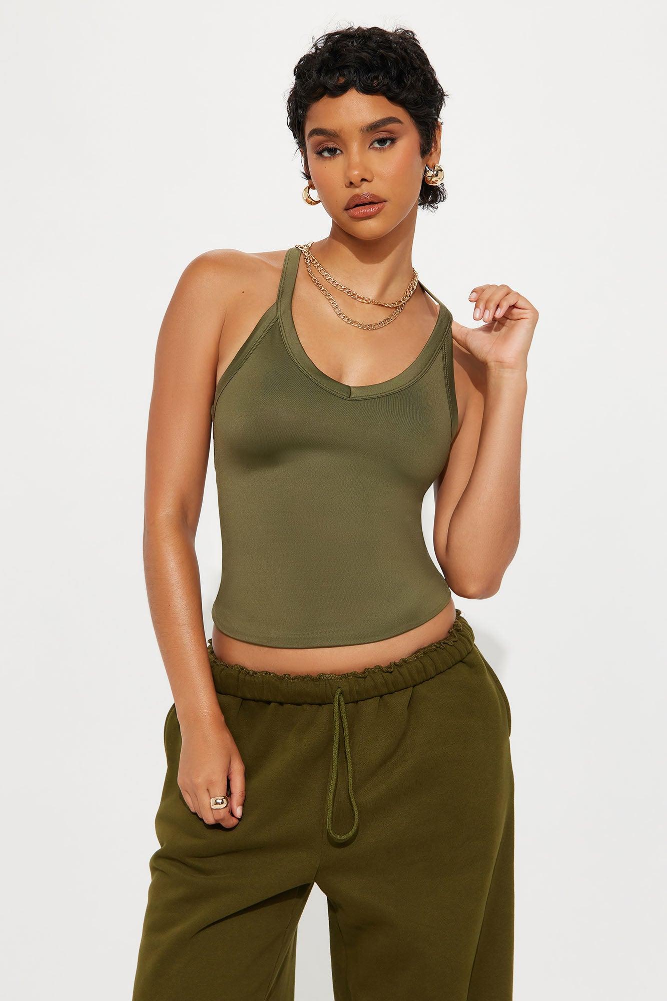 Contour Double Lined V-Neck Tank Top - Military Green Female