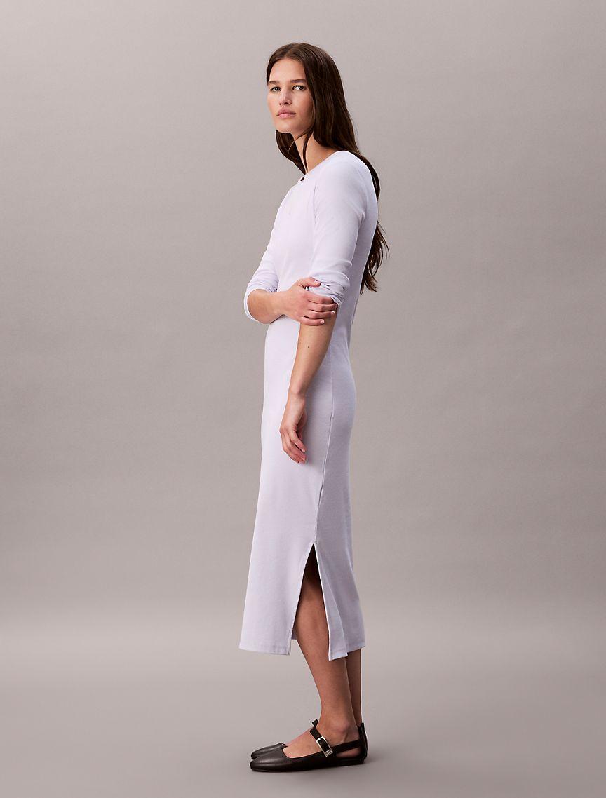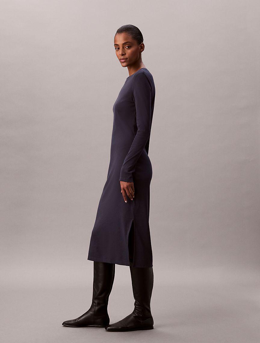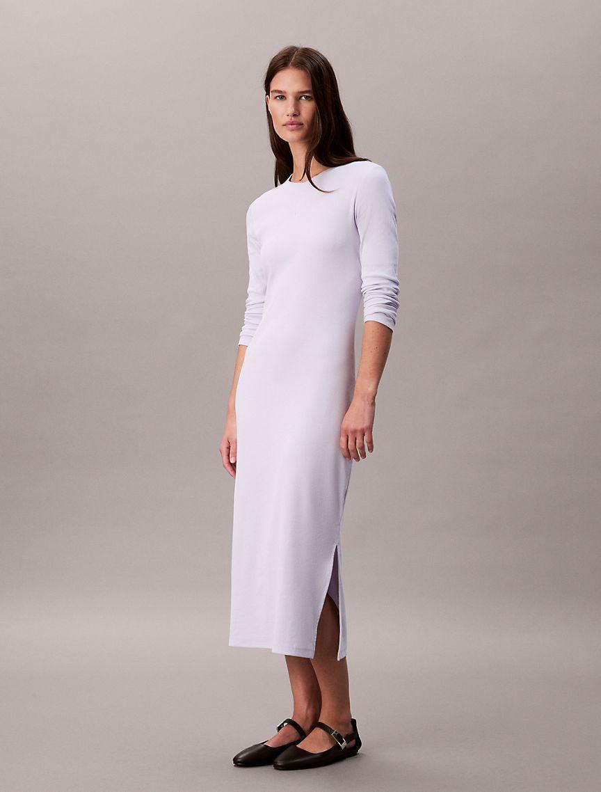 A slim, fluid dress with a contouring midi silhouette. Made from soft cotton stretch for a flexible feel. Split at the hem for easy movement.