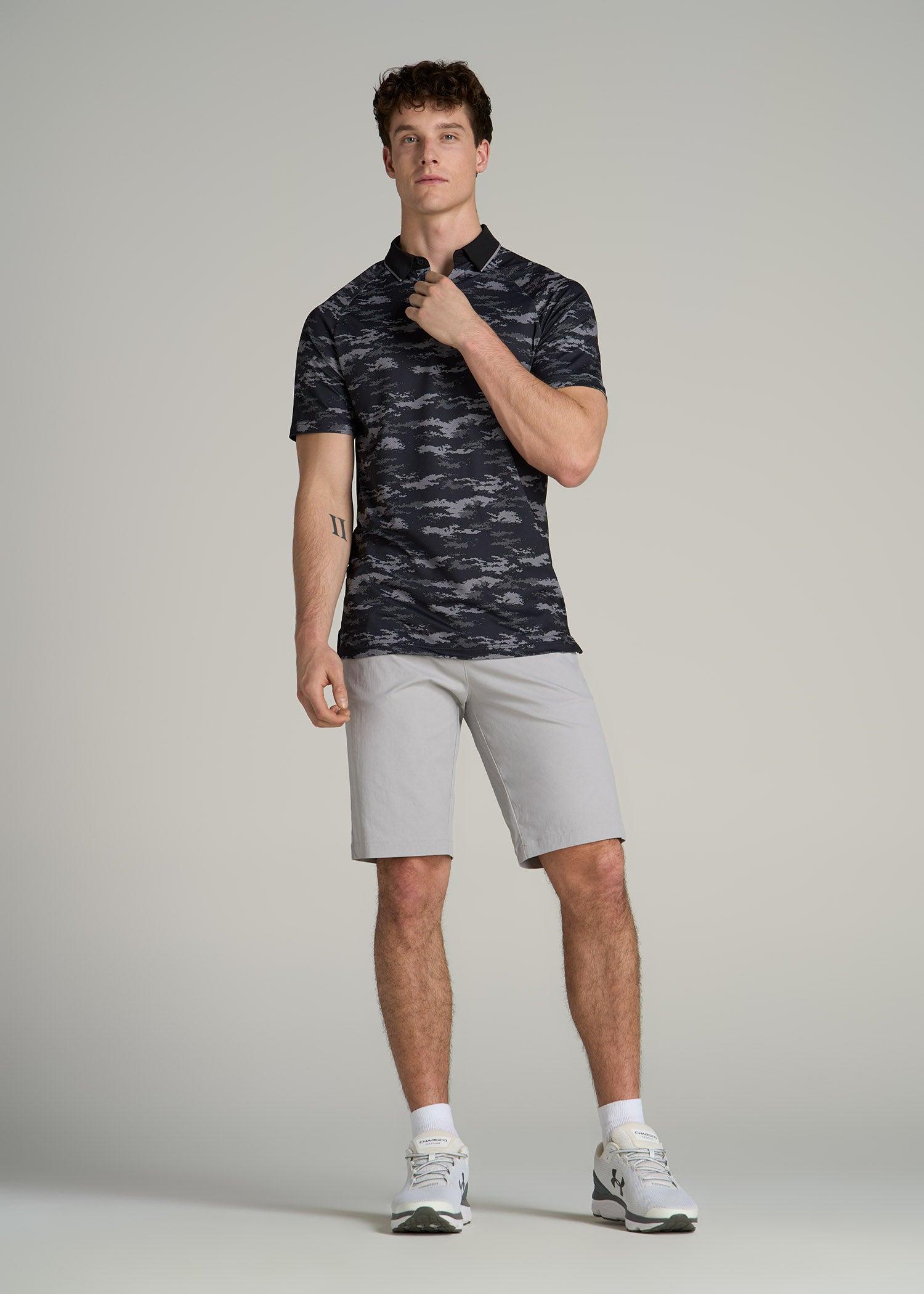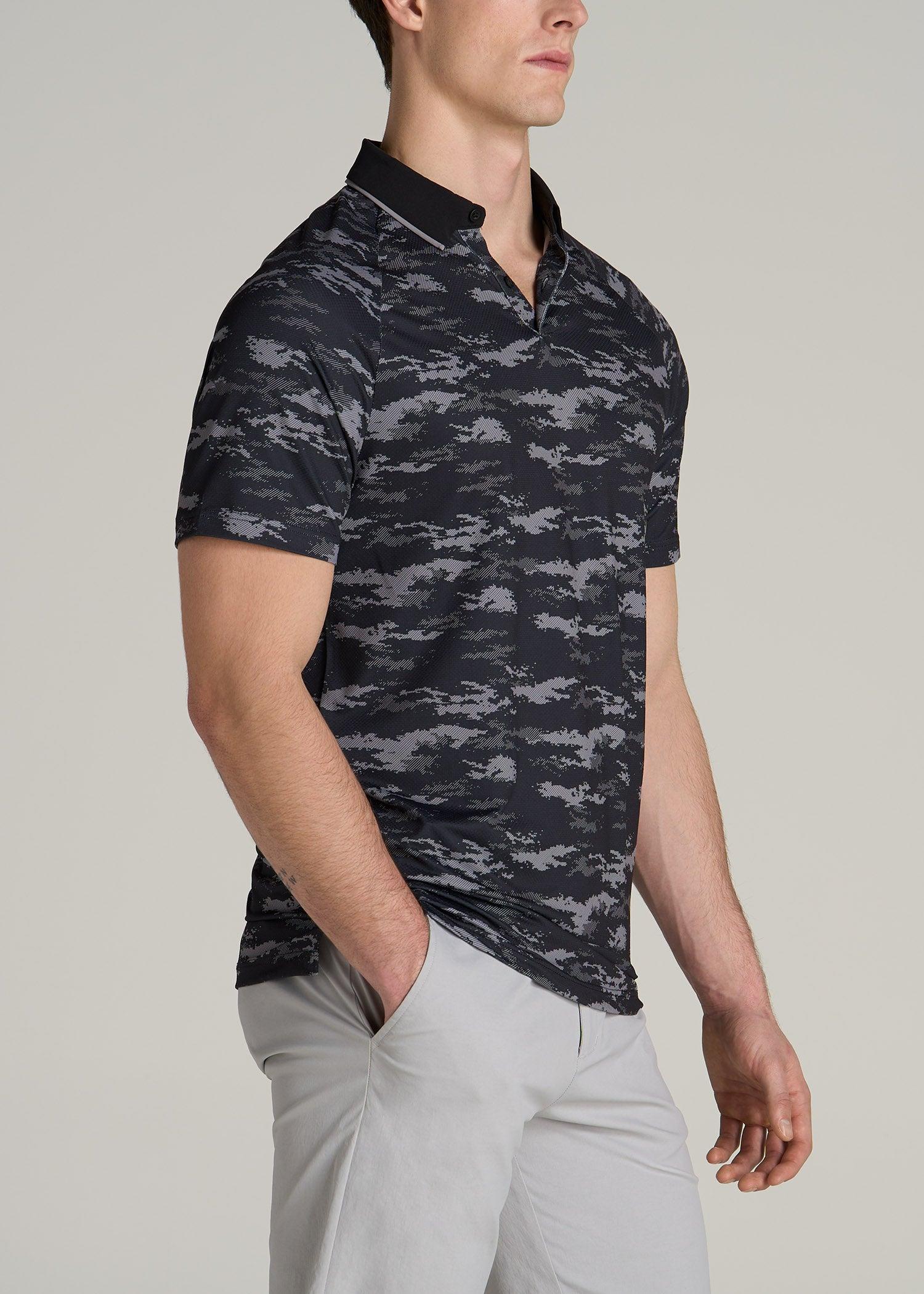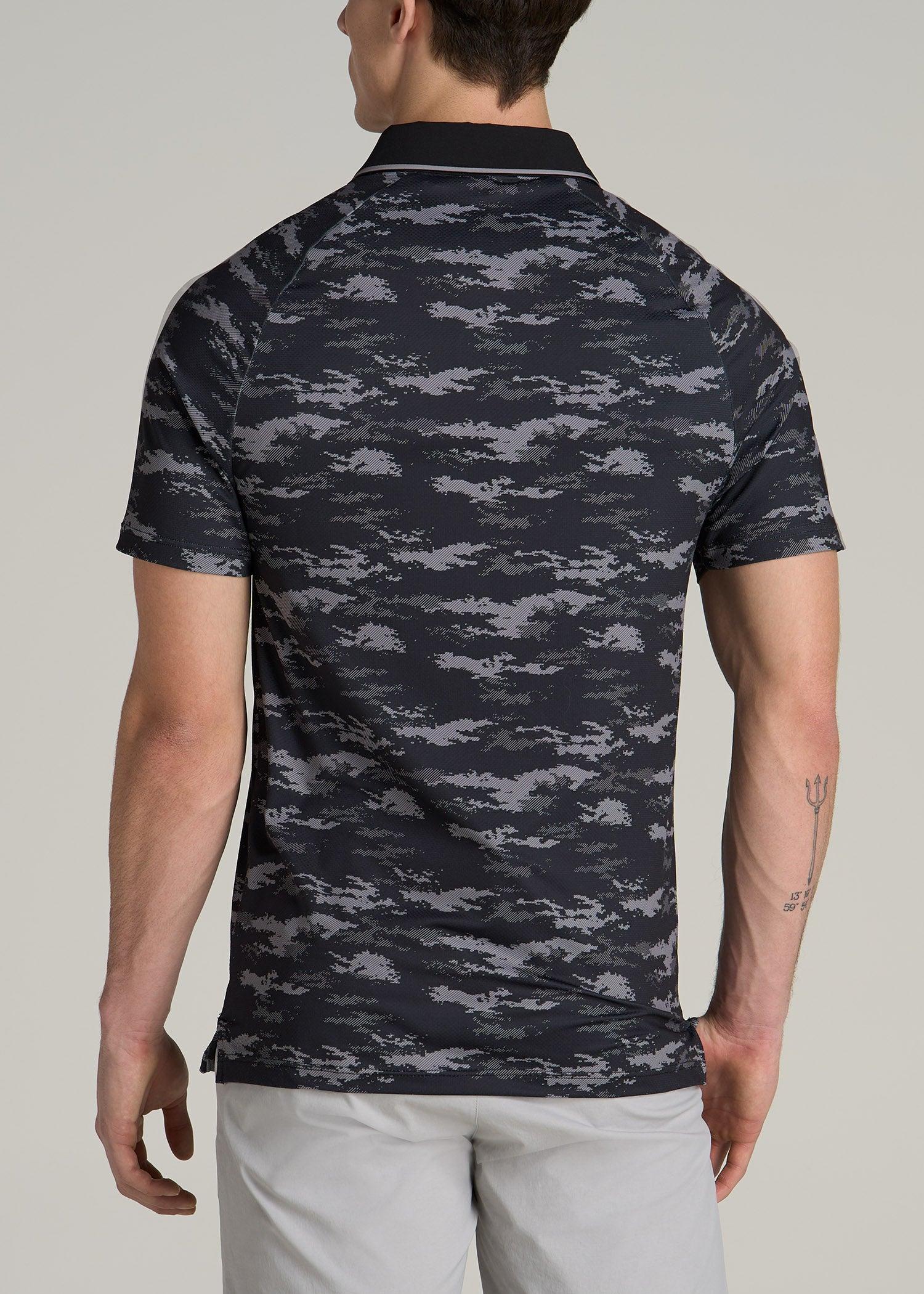Contrast Collar A.T. Performance Print Golf Tall Men's Polo Shirt in Black and Grey Camo