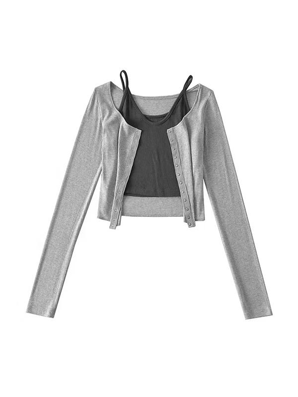 Contrast Color Trim Breasted Curvy Hem Long Sleeve Knit