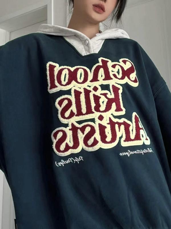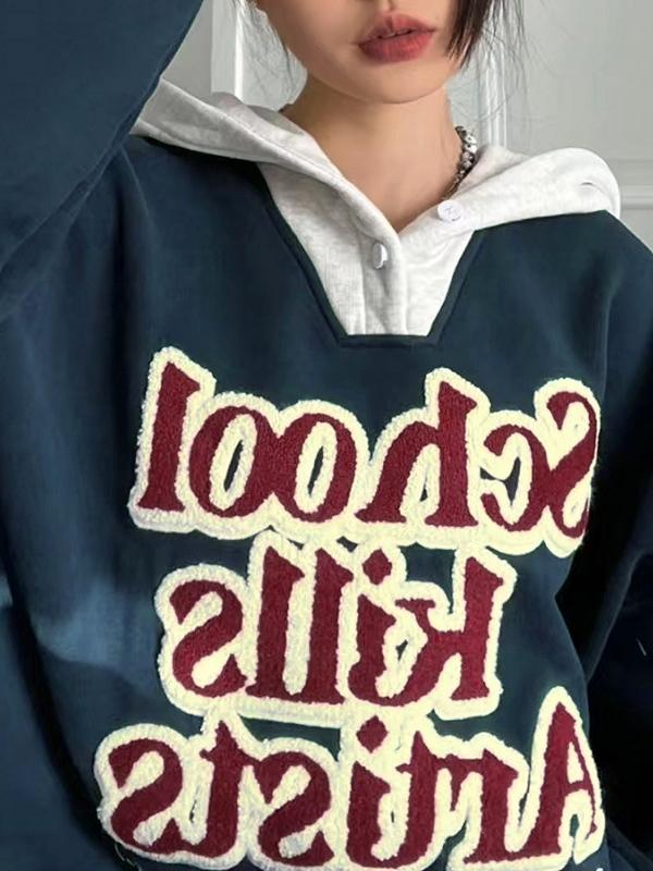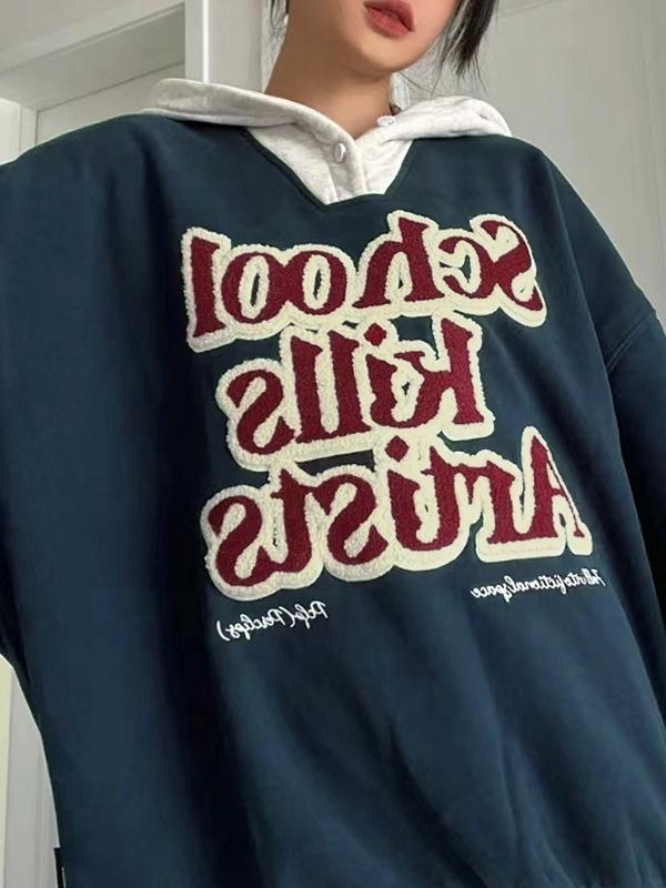 Contrast Color Flocking Letter Embroidery Oversized Hoodie