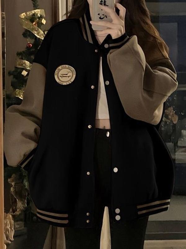 Contrast color loose baseball jacket