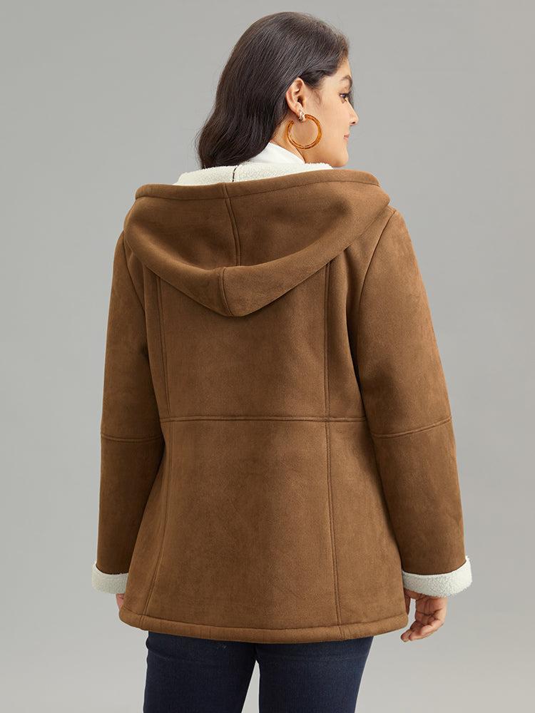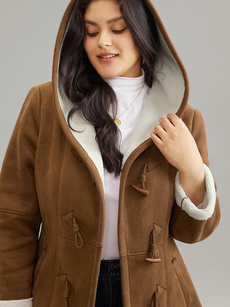 Shop Contrast Duffle Button Fluffy Hooded Coat now and redefine your style with confidence at BloomChic. Tailored for mid and plus-size women. This trendy Outerwear Women, sizes 10-30. Season:Winter;Color:DarkBrown;Style:Casual;Pattern Type:Plain;Details:Pocket, Button, Patchwork, Contrast, Lined;Pocket:It is perfectly sized to carry a phone.;Belt:No-belt;Closure Type:Button;Lining:Lining