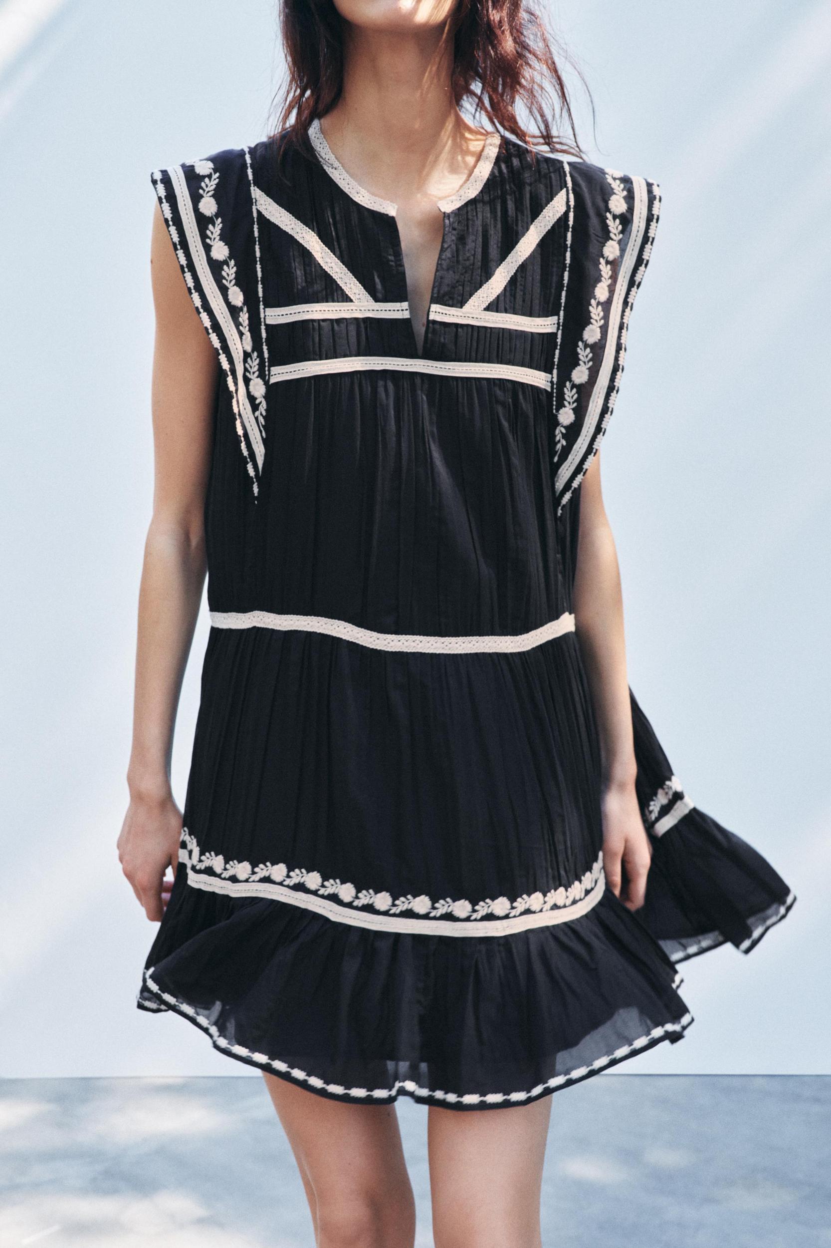CONTRAST EMBROIDERED DRESS ZW COLLECTION