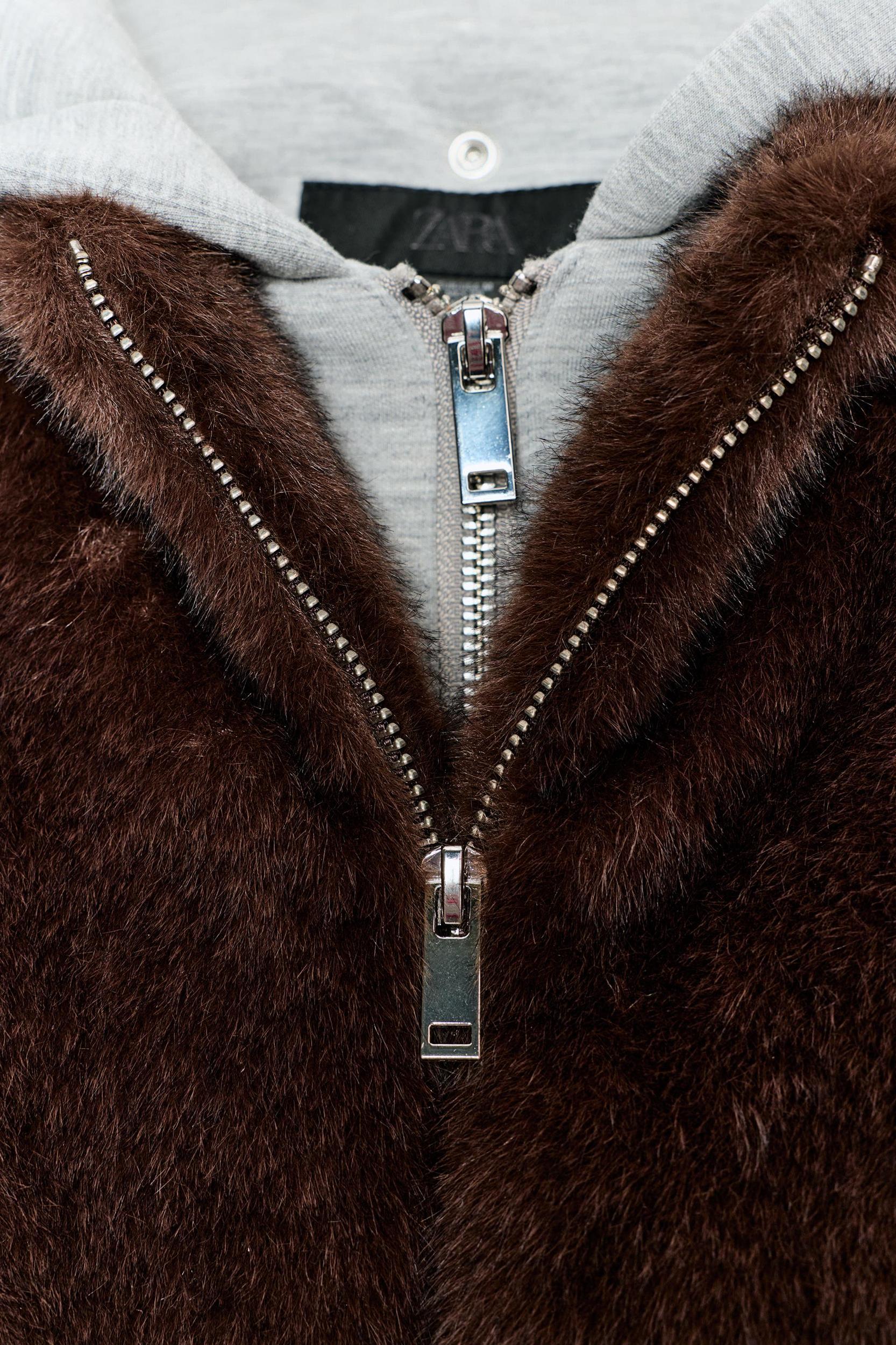 CONTRAST FAUX FUR HOODIE BOMBER JACKET