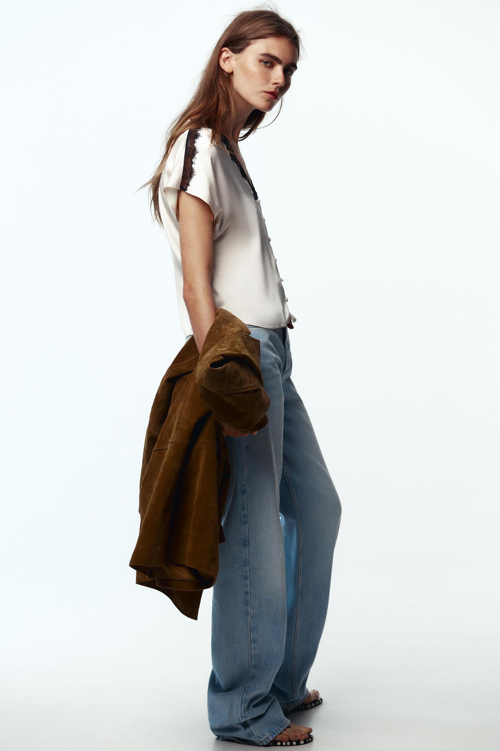 CONTRAST LACE SATIN EFFECT BLOUSE