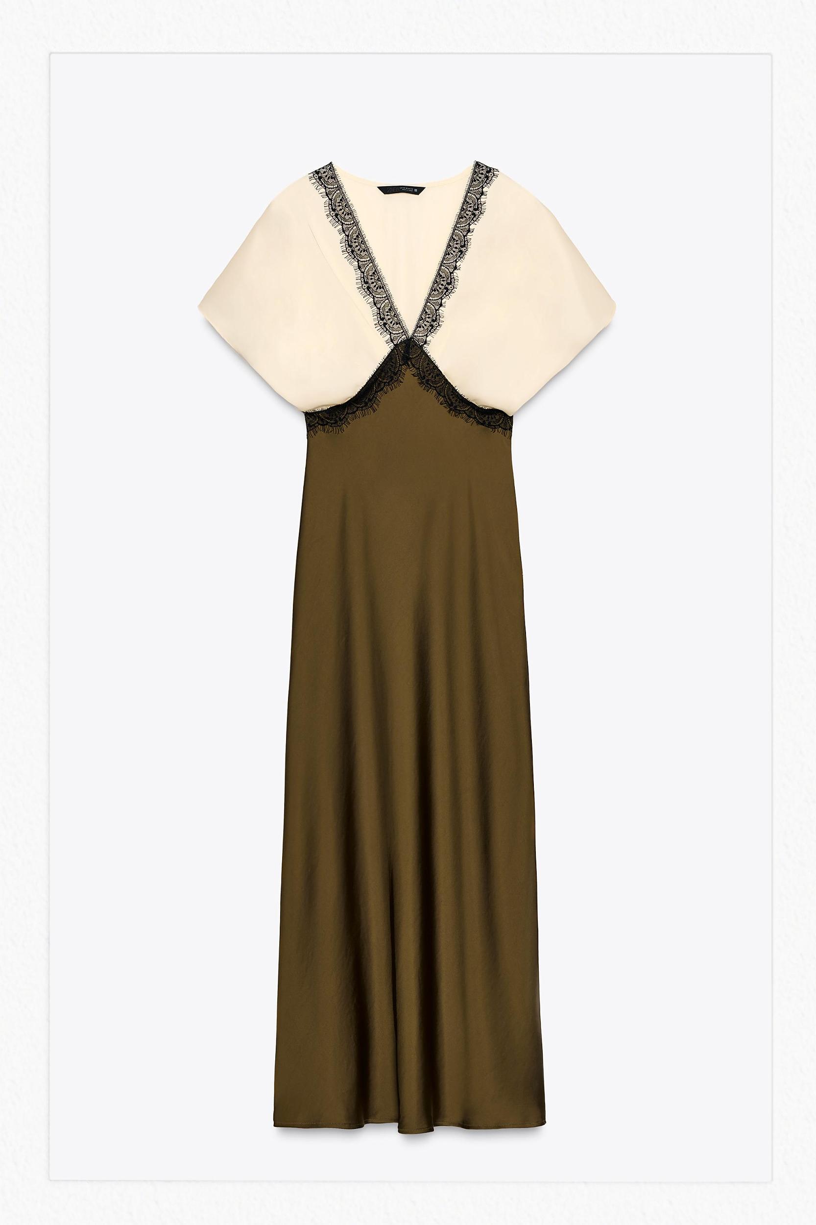 CONTRAST LACE SATIN EFFECT MIDI DRESS