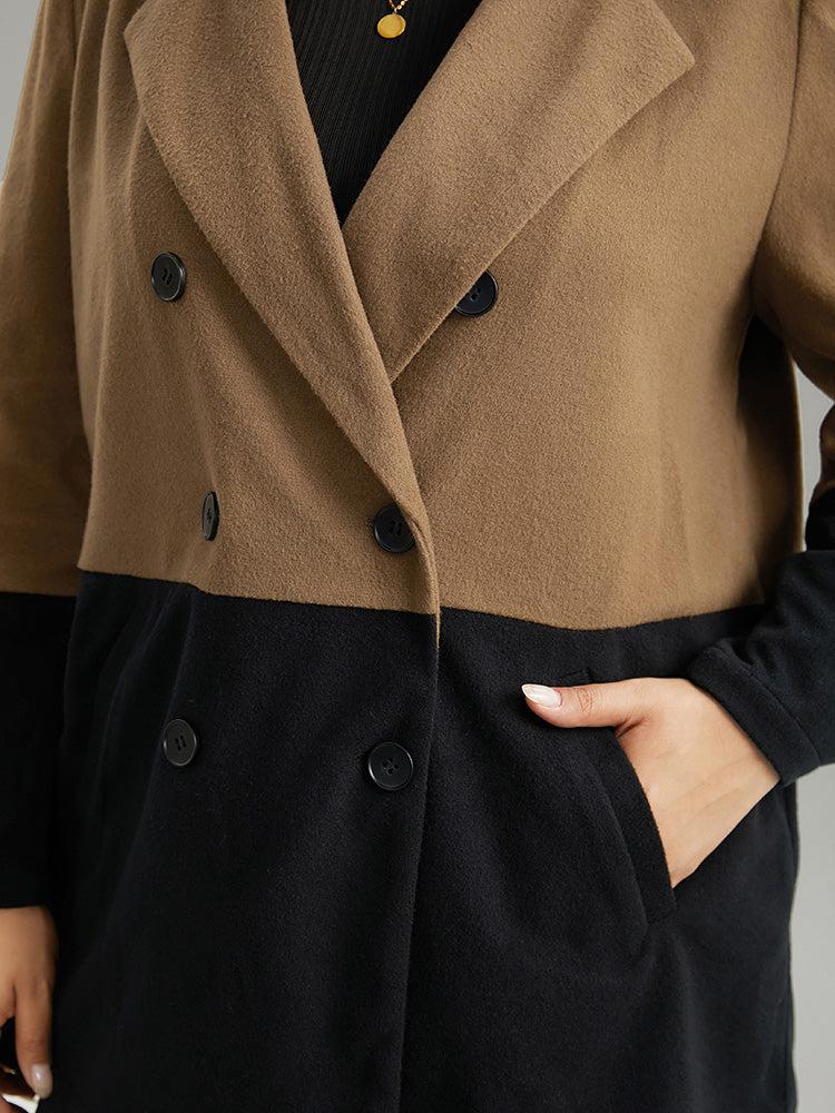 Shop Contrast Lapel Collar Double Breasted Pocket Coat now and redefine your style with confidence at BloomChic. Tailored for mid and plus-size women. This trendy Outerwear Women, sizes 10-30. Season:Winter;Color:DarkBrown;Style:Casual;Pattern Type:Plain;Details:Pocket, Button, Patchwork, Contrast;Pocket:It is perfectly sized to carry a phone.;Belt:No-belt;Closure Type:Button;Lining:No-lining