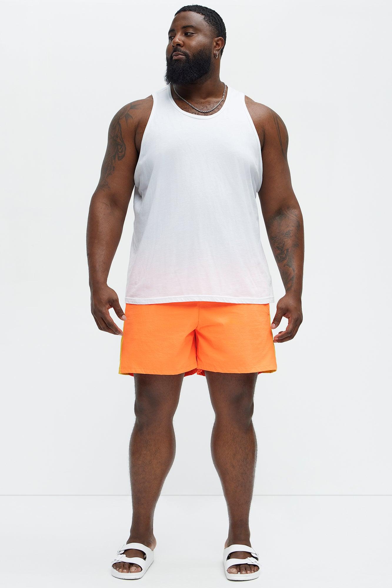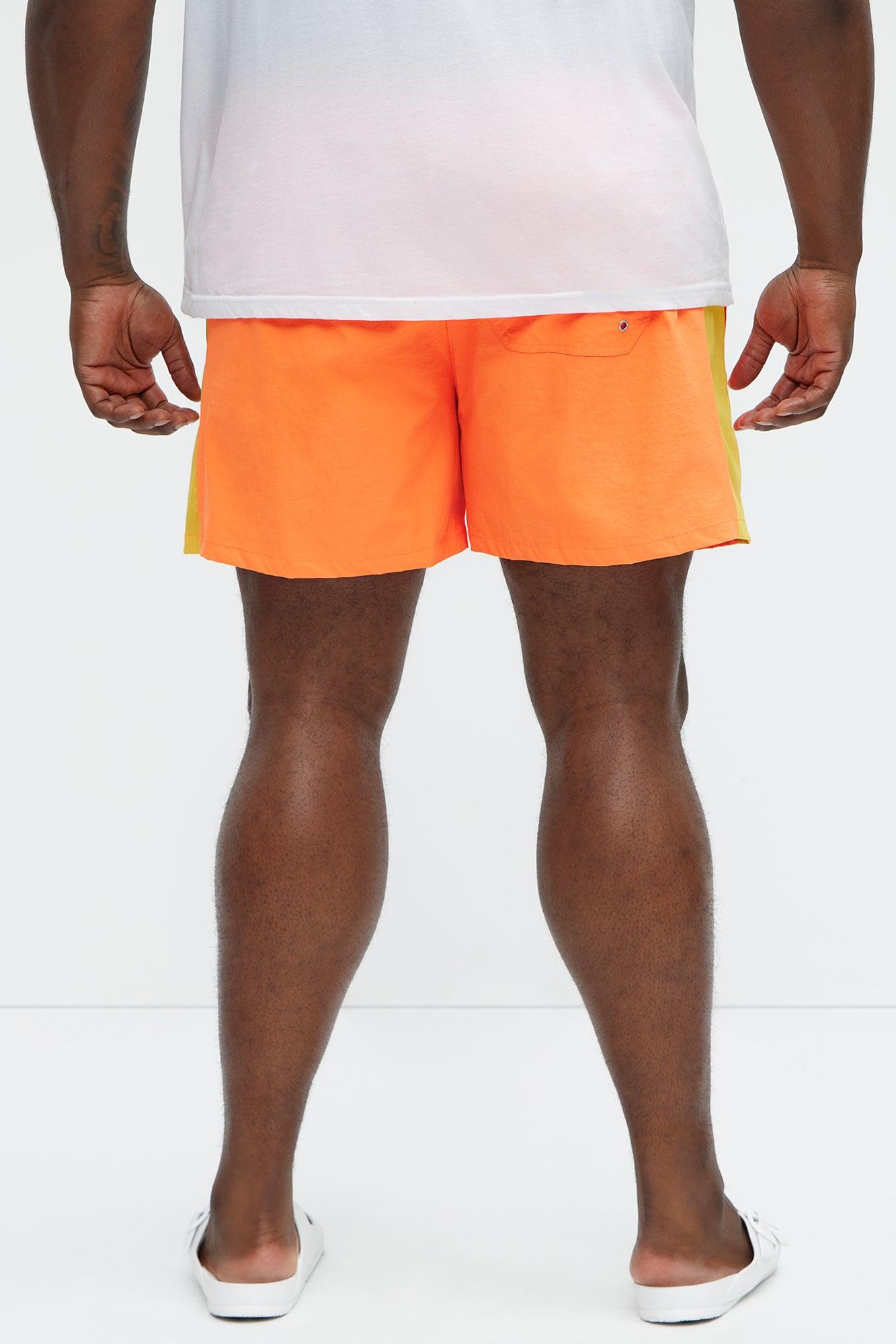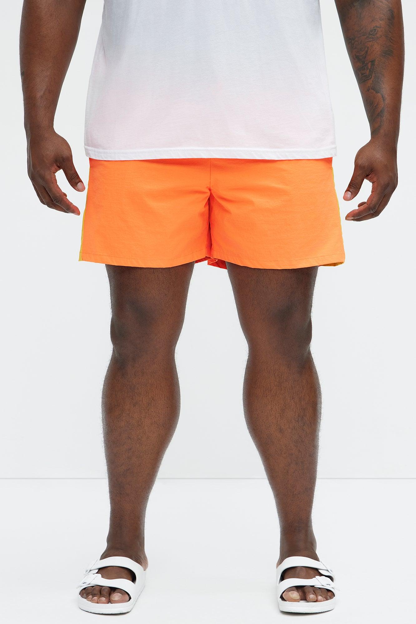 Available In Orange/combo. 6" Inseam Elastic Waist Drawstring Mesh Lined Side Hand Pockets Contrast Side Panel Shell: 92% Nylon, 8% Spandex Lining: 100% Nylon Final Sale Imported California Proposition 65WARNING: Cancer and Reproductive Harm - www.P65Warnings.ca.gov.