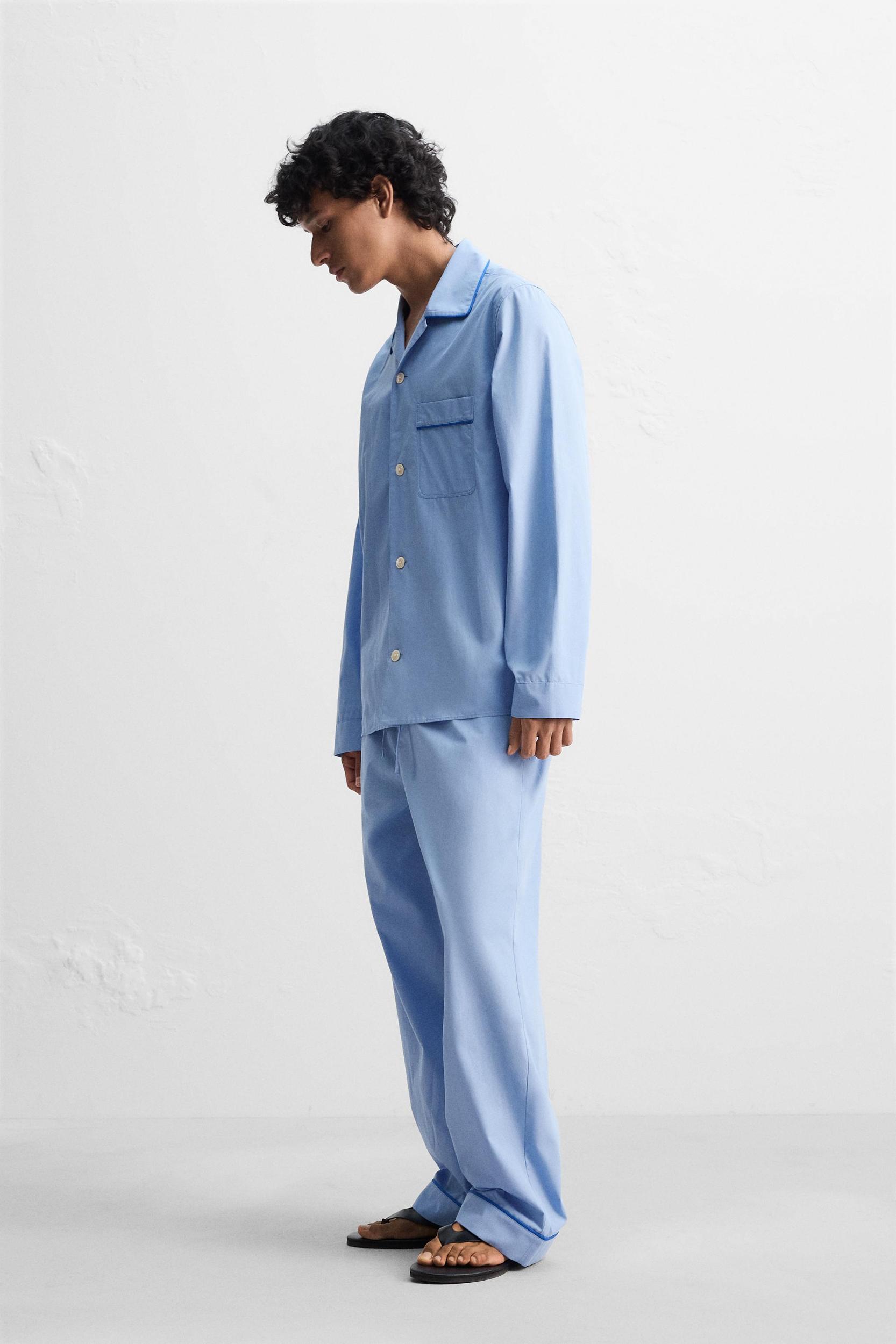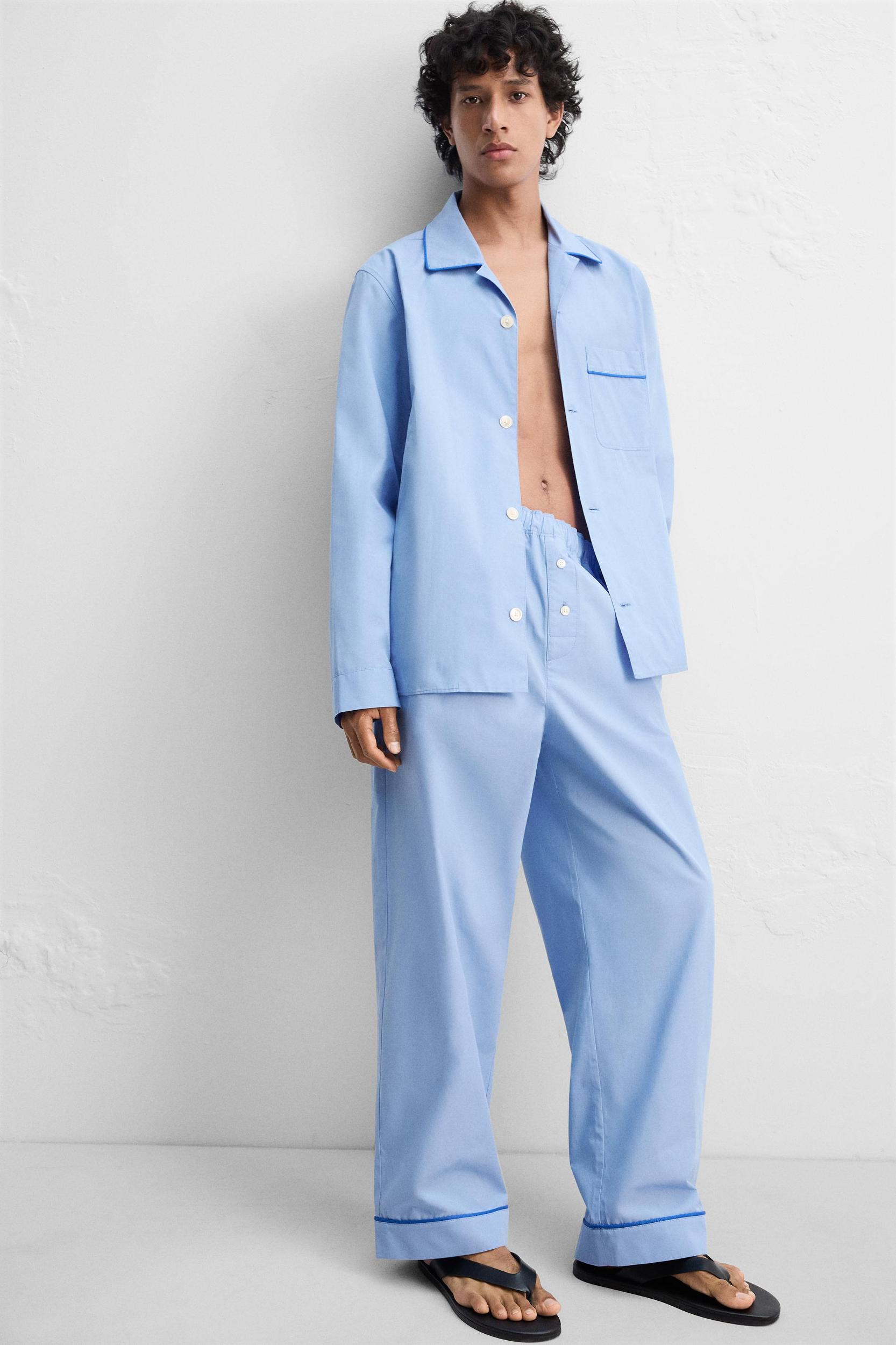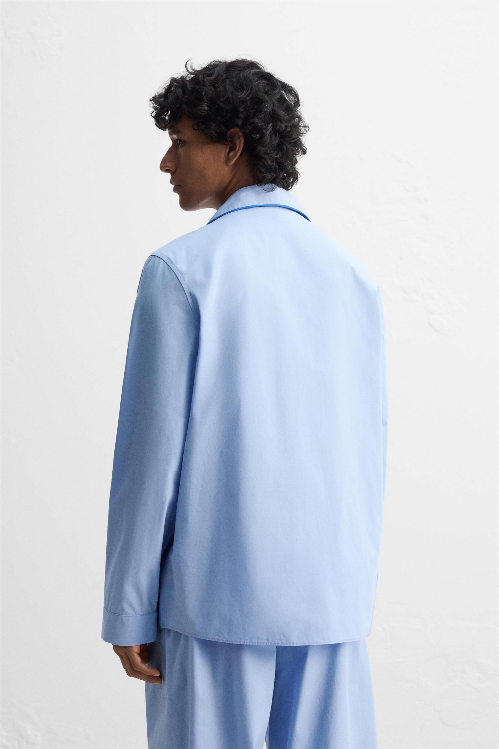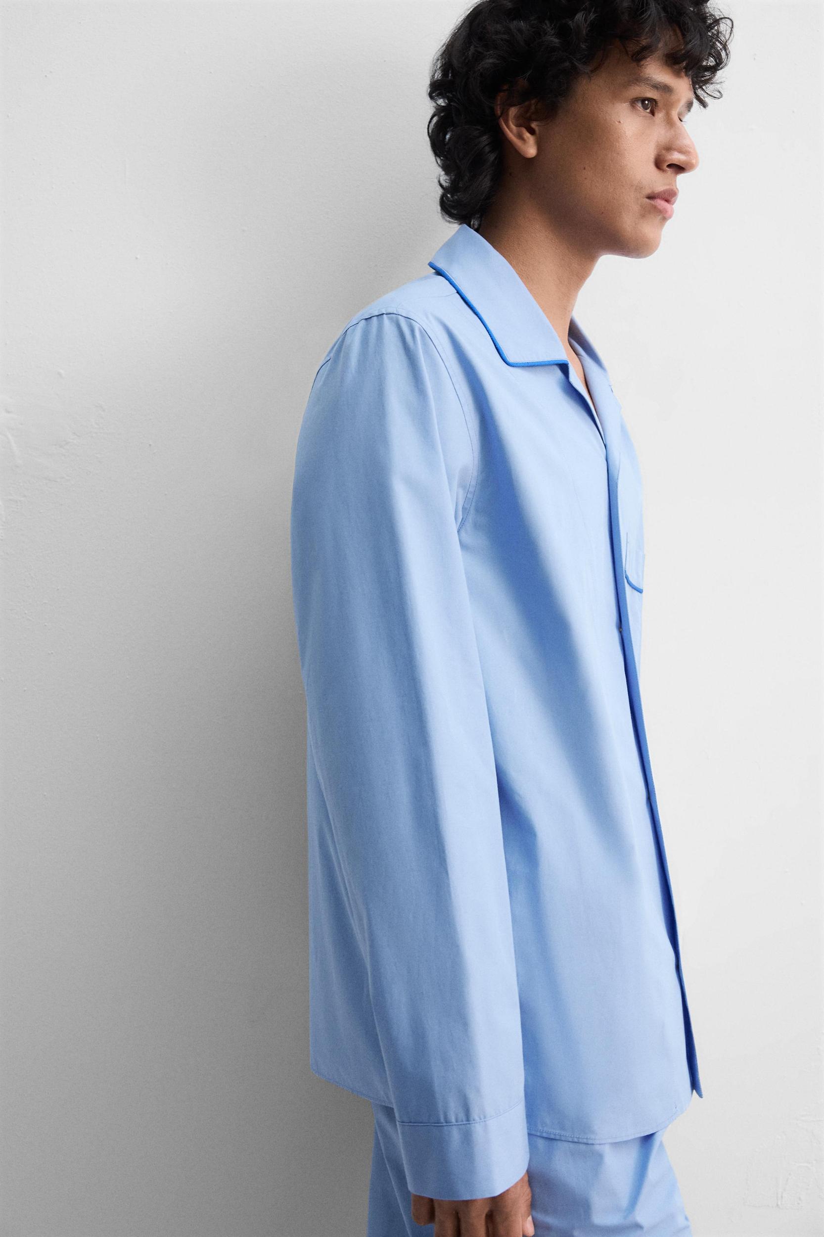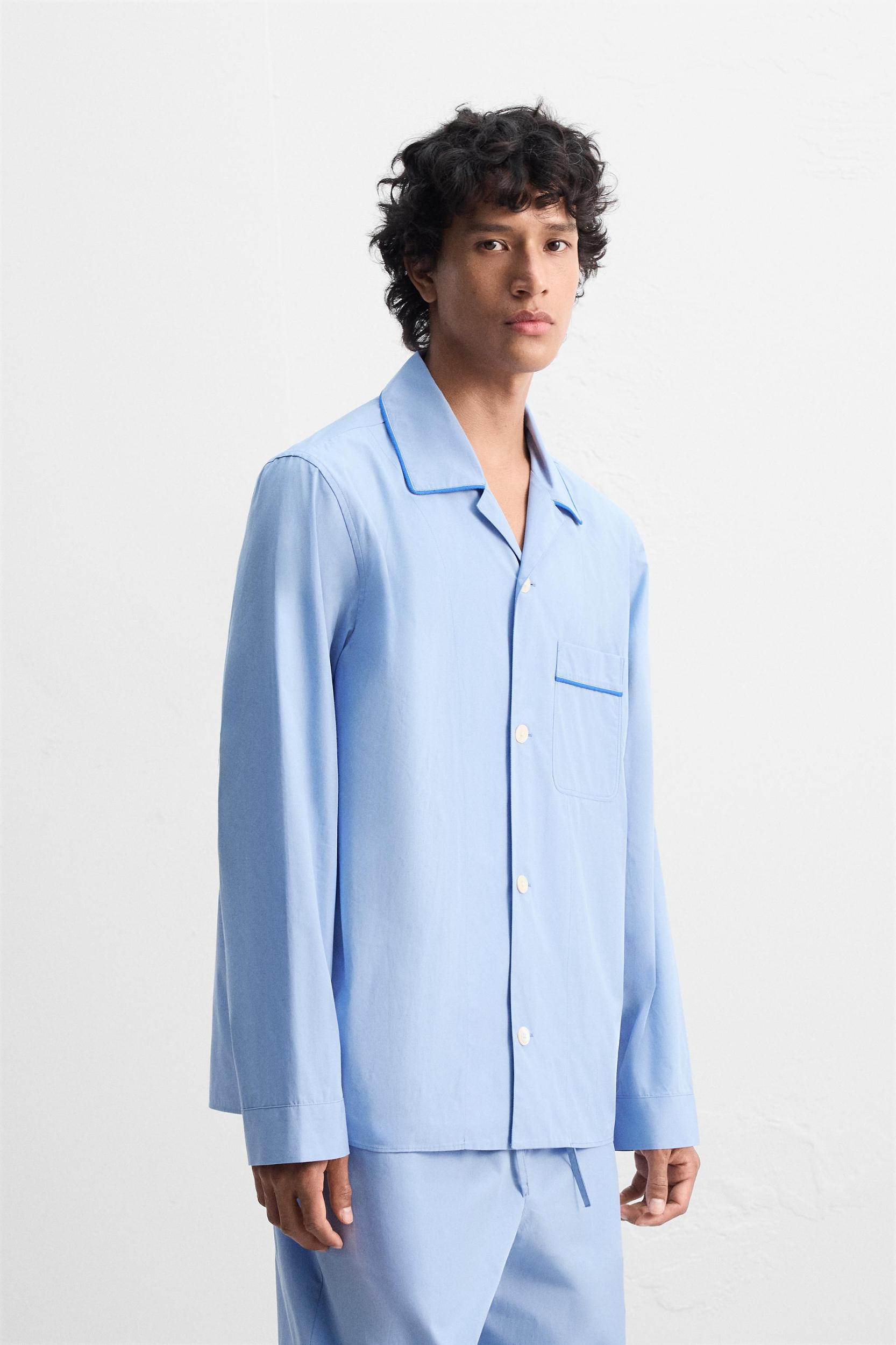 Pajama shirt made of cotton fabric. Spread collar and long sleeves. Chest patch pocket. Contrasting trim detail. Front button closure. Origins special collection.