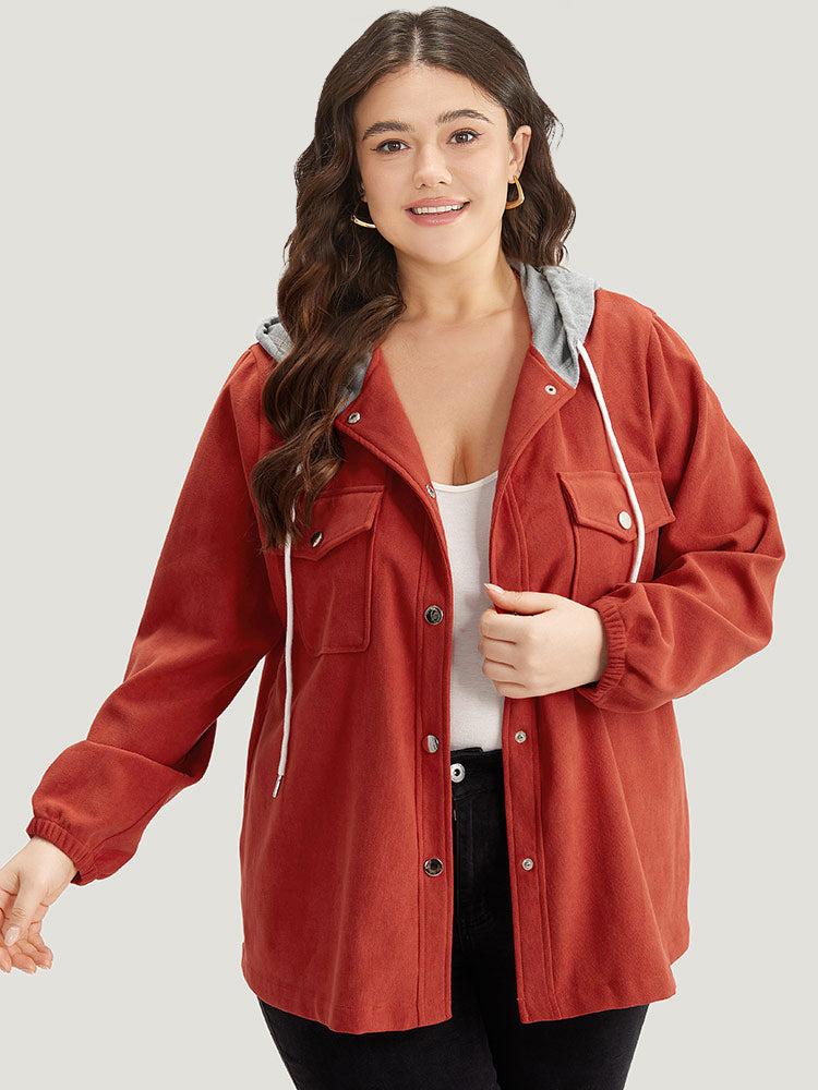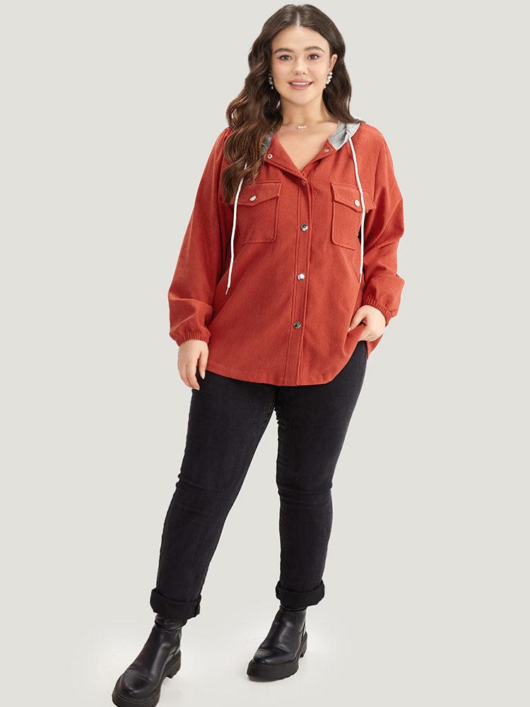 Shop Contrast Patchwork Button Through Hooded Drawstring Corduroy Coat now and redefine your style with confidence at BloomChic. Tailored for mid and plus-size women. This trendy Outerwear Women, sizes 10-30. Season:Fall;Color:OrangeRed;Style:Casual;Pattern Type:Plain;Details:Pocket, Button, Drawstring, Contrast, Patchwork;Pocket:It is perfectly sized to carry a phone.;Belt:No-belt;Closure Type:Button;Lining:No-lining