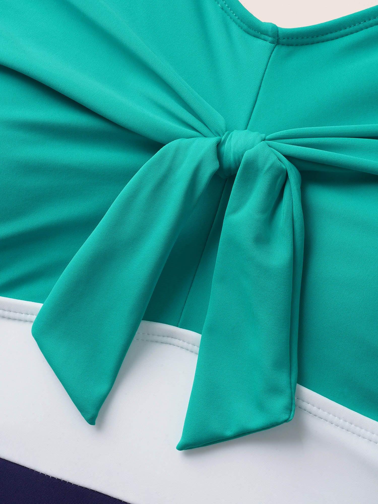 Shop Contrast Patchwork Tie Knot Gathered One Piece Swimsuit now and redefine your style with confidence at BloomChic. Tailored for mid and plus-size women. This trendy Swimwear Women, sizes 10-30. Season:Summer;Color:Malachitegreen;Style:Beach Vacation;Cup Type:Removable cups;Waist Design:High Rise;Neckline:V-neck;Sleeve Type:Sleeveless;Prints:Geometric & color block;Details:Contrast, Gathered, Tie knot;Pocket:No-pocket;Belt:No-belt;Chest pad:Removable Padding;Lining:Lining;Closure Type:Non