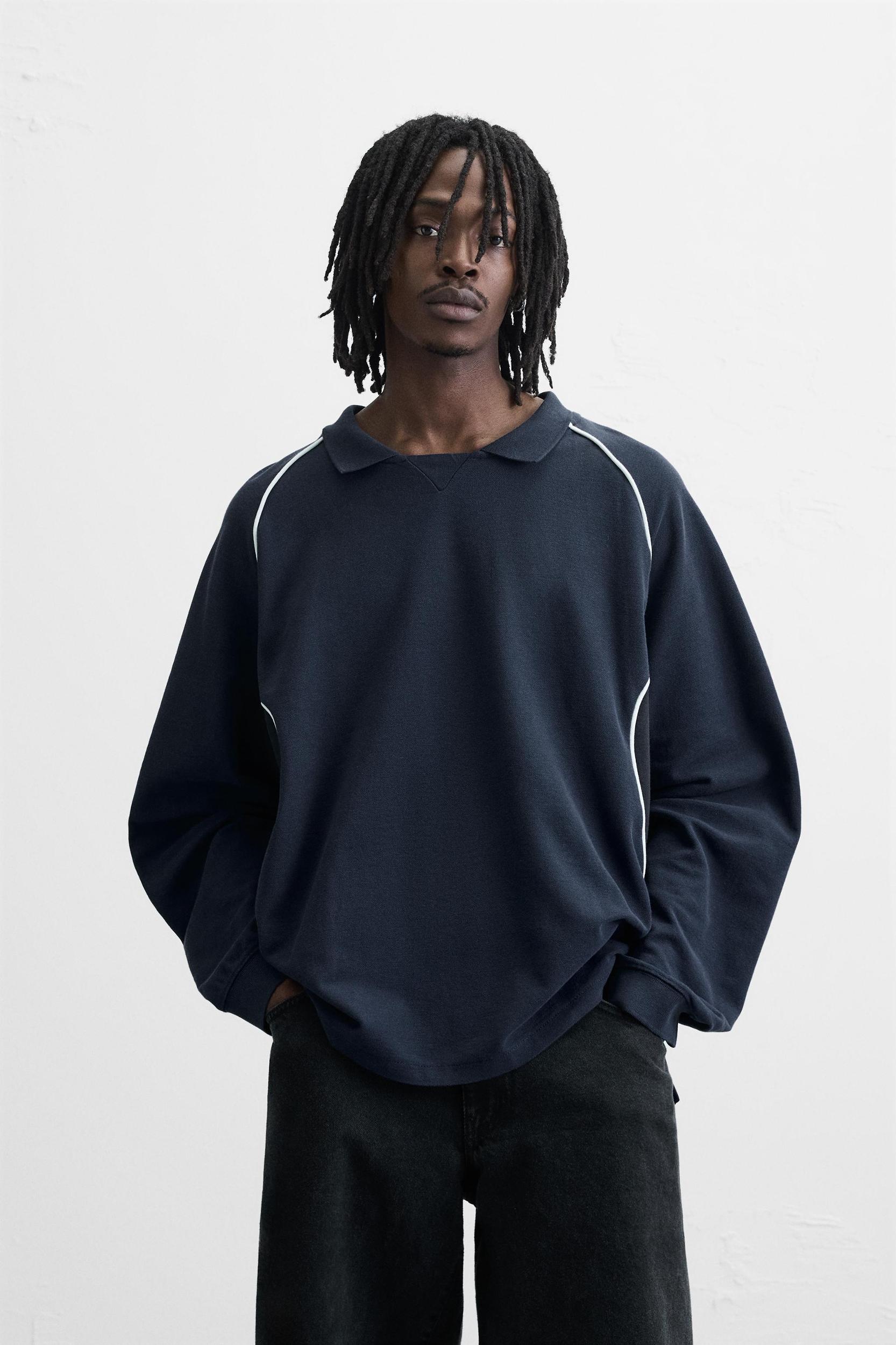 CONTRAST PIQUÉ POLO SWEATSHIRT