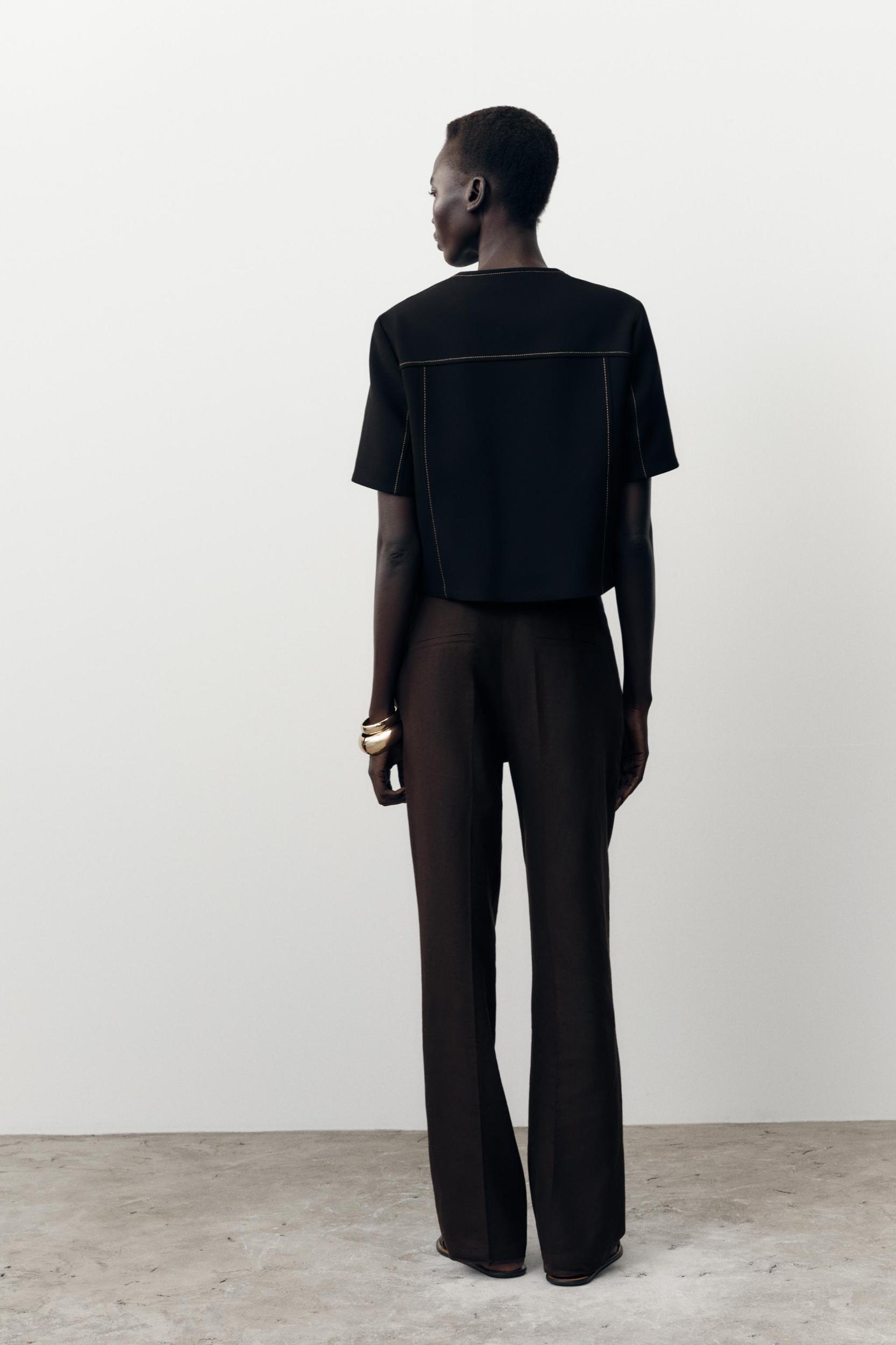 CONTRAST STITCHING SHORT SLEEVE BLAZER