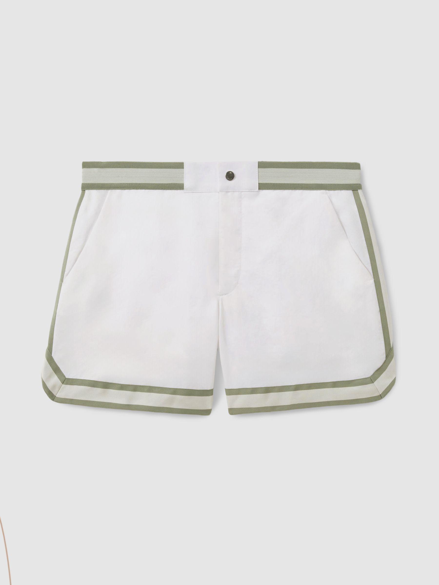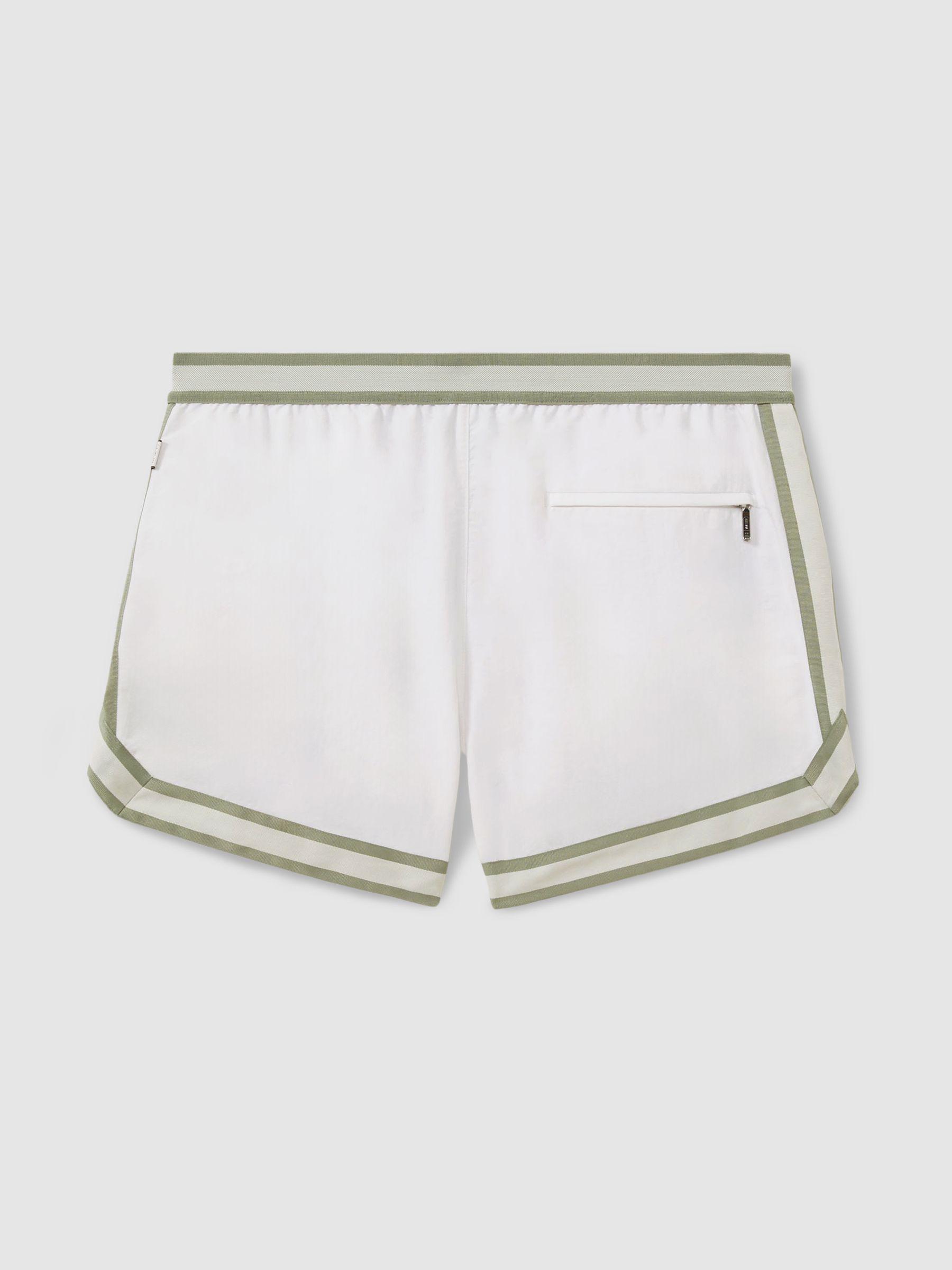 Contrast Stripe Elasticated Waist Swim Shorts in White