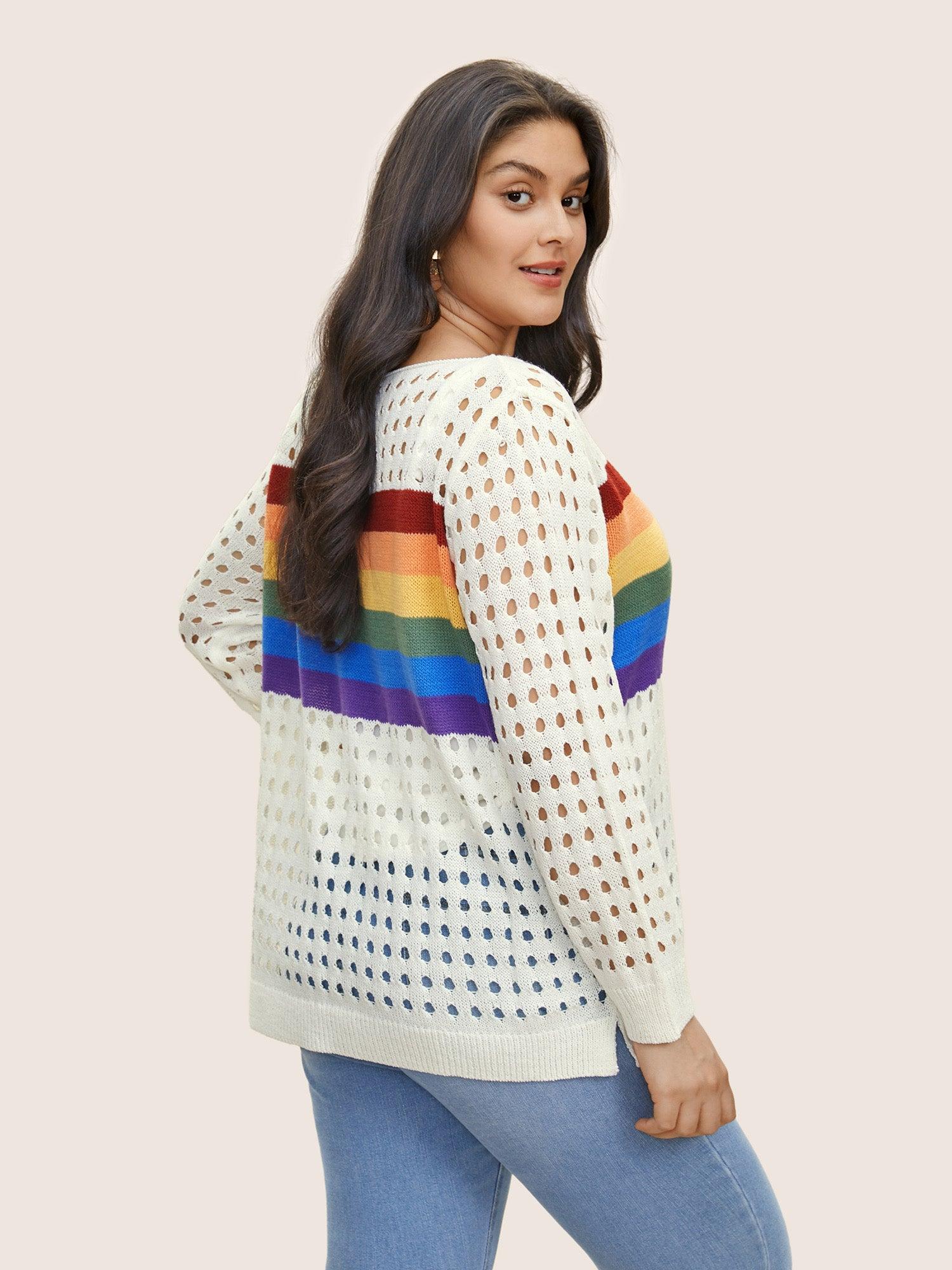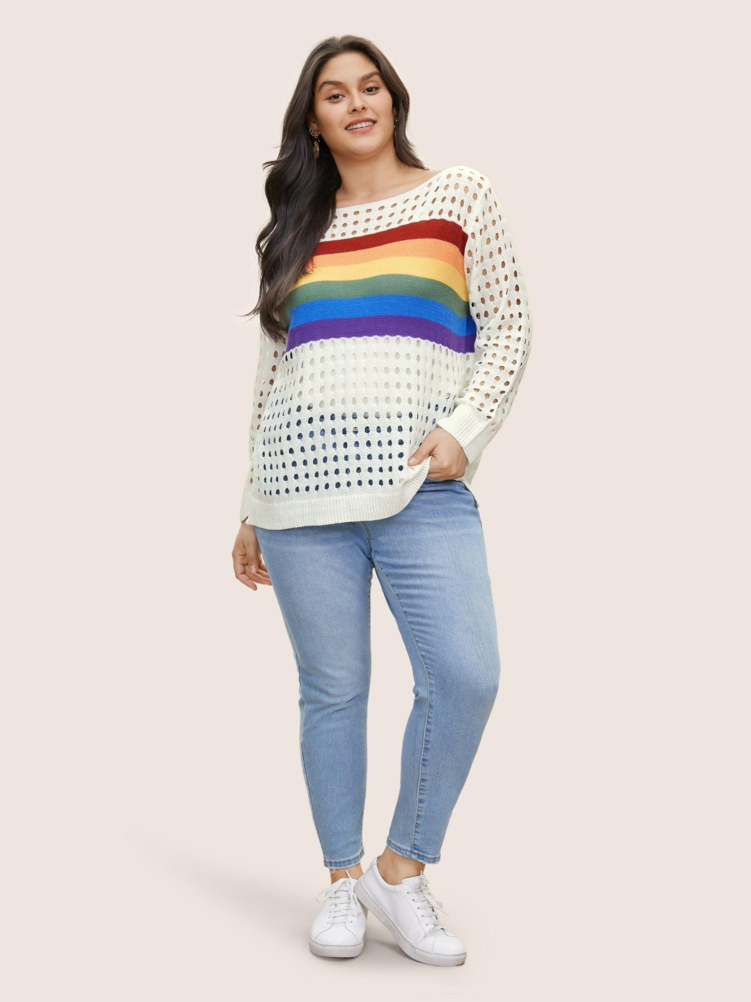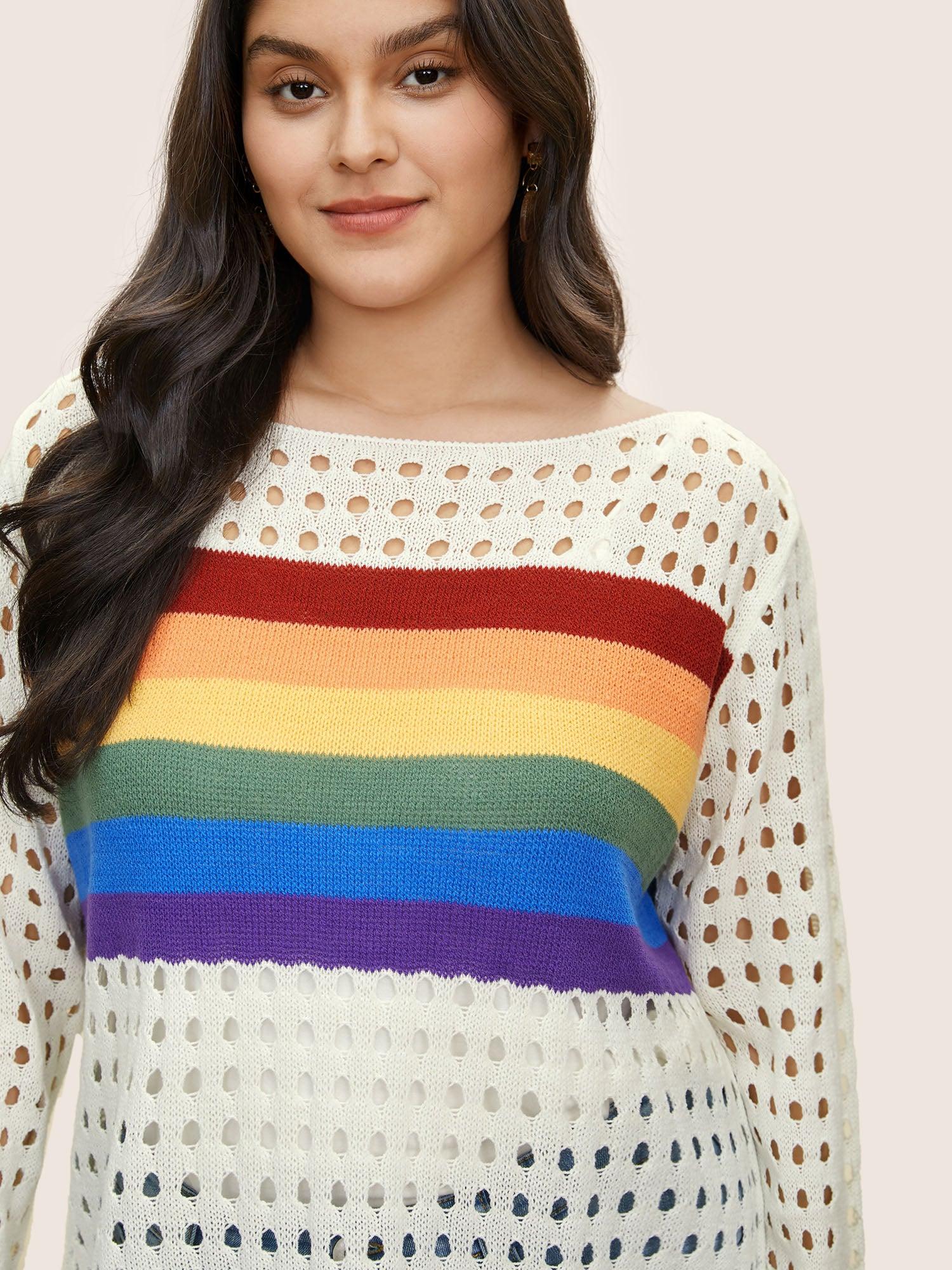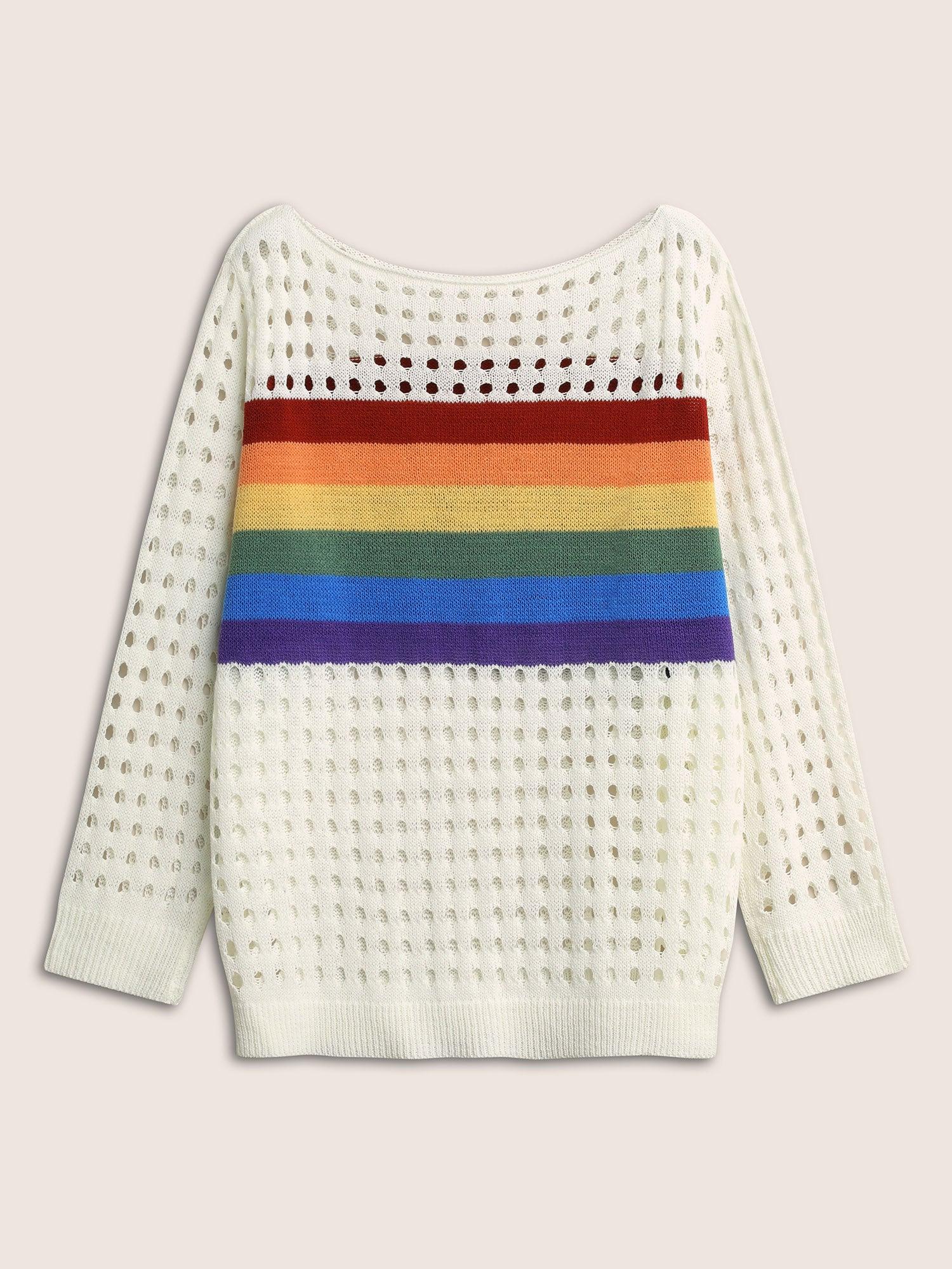 Shop Contrast Striped Boat Neck Cut Out Pullover now and redefine your style with confidence at BloomChic. Tailored for mid and plus-size women. This trendy Sweaters Cardigans Women, sizes 10-30. Season:Spring;Color:White;Style:Resort;Neckline:Boat Neck;Sleeve Type:Regular Sleeve;Pattern Type:Rainbow;Prints:Stripes;Details:Cut-Out, Contrast;Pocket:No-pocket;Belt:No-belt