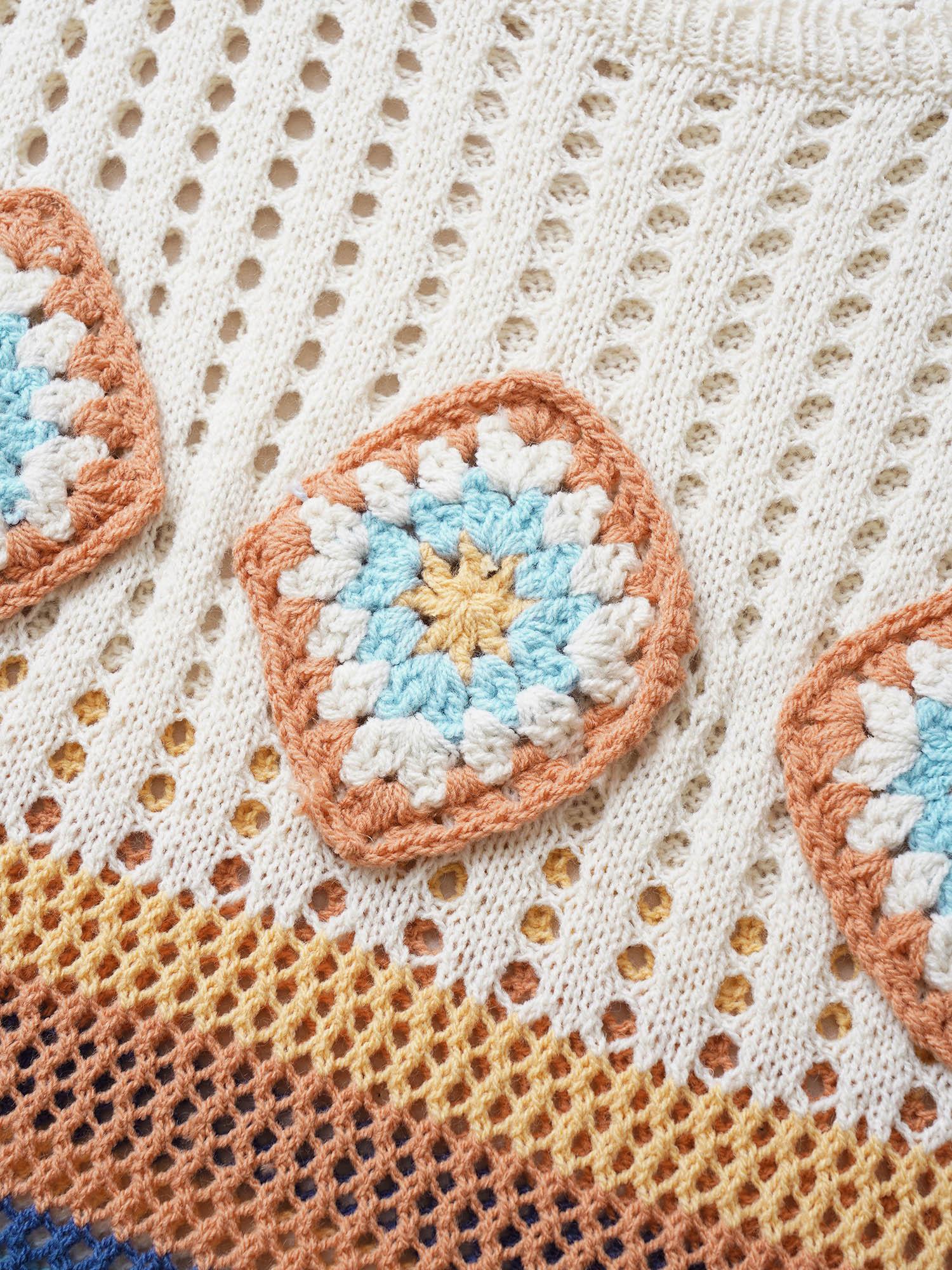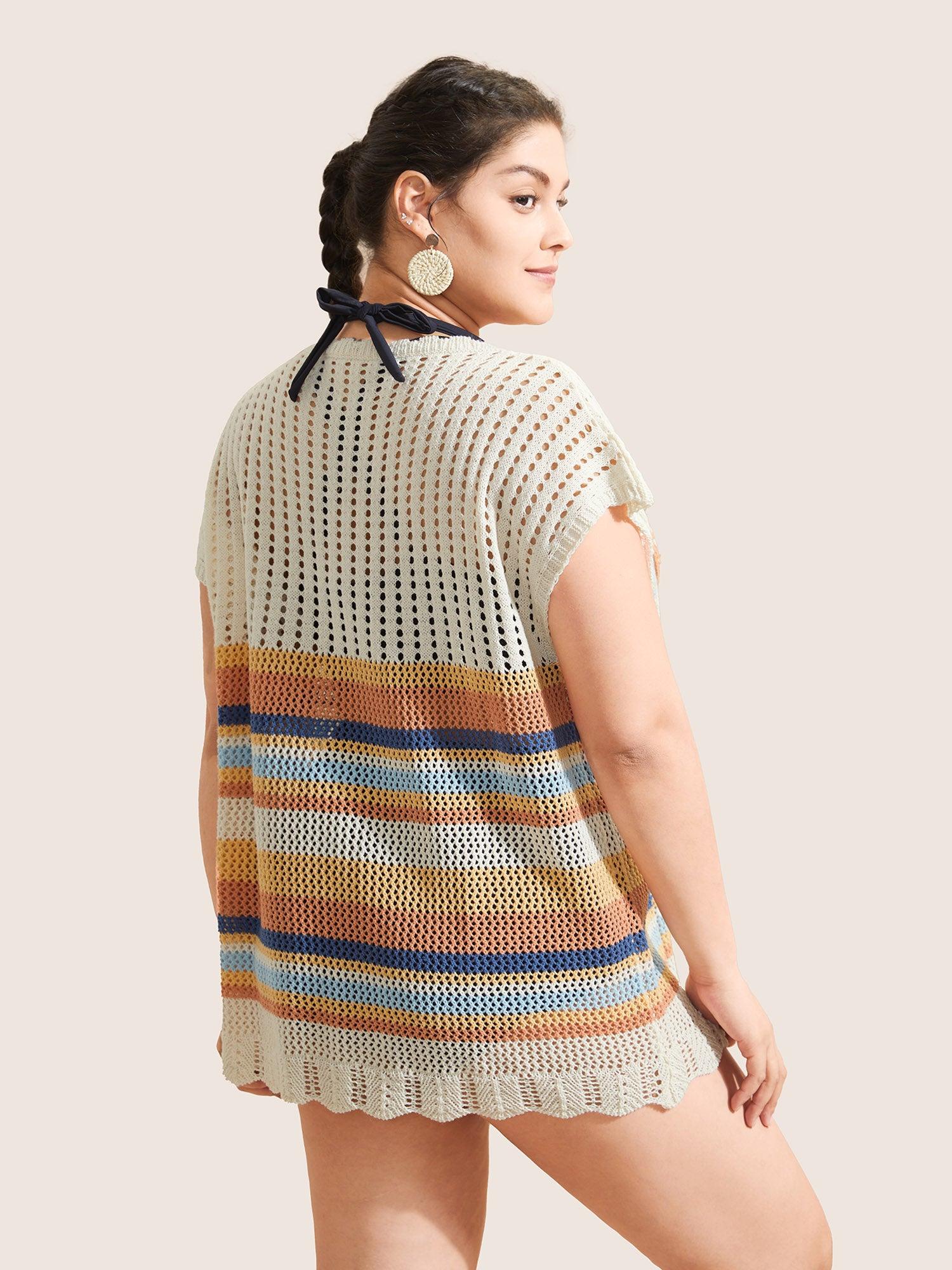 Shop Contrast Striped Crochet Cut Out Swim Cover Up now and redefine your style with confidence at BloomChic. Tailored for mid and plus-size women. This trendy Swimwear Women, sizes 10-30. Season:Summer;Color:Ivory;Neckline:Round Neck;Sleeve Type:Cap sleeve;Details:Crochet, Cut-Out, Contrast;Pocket:No-pocket;Belt:No-belt