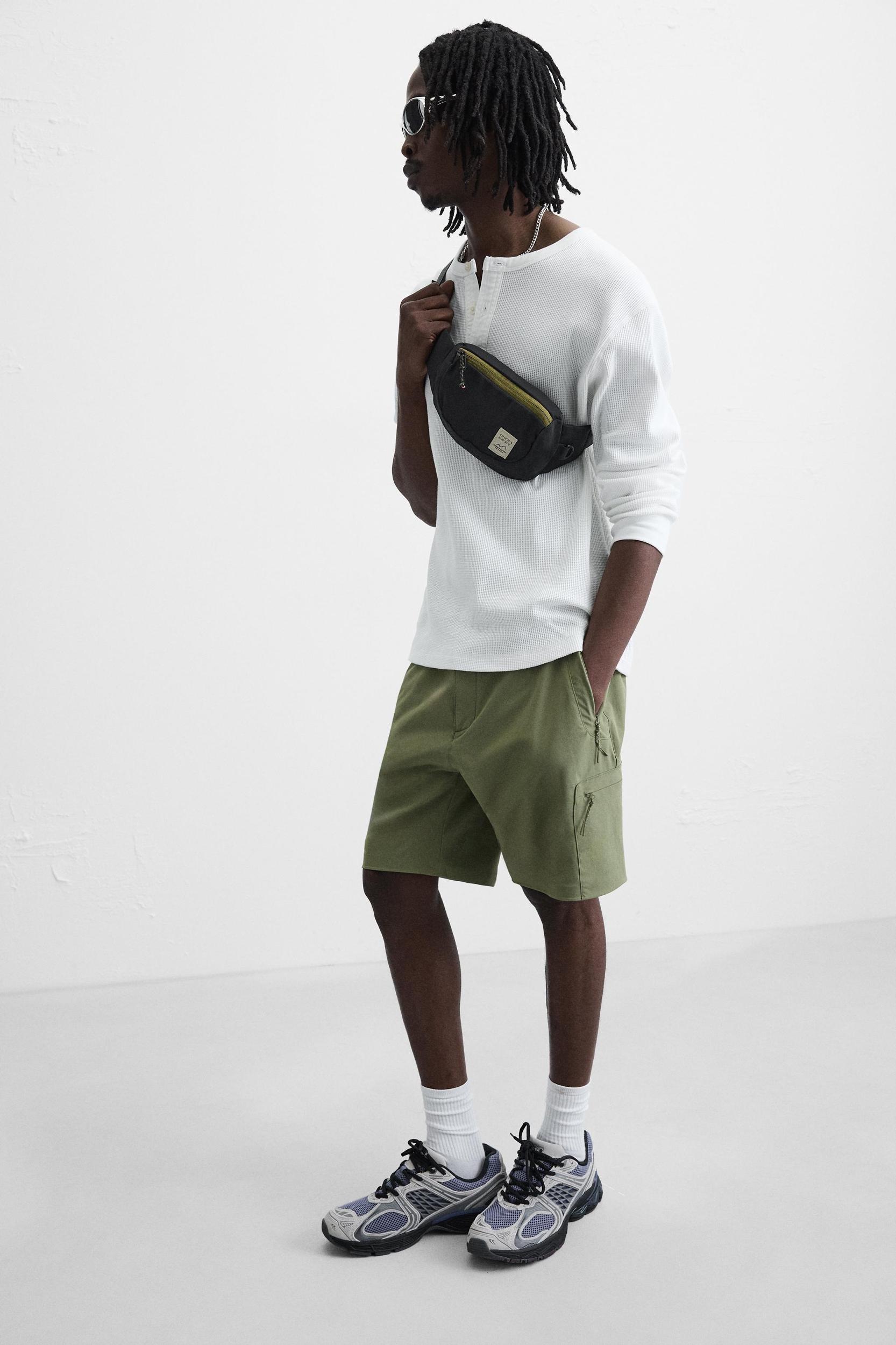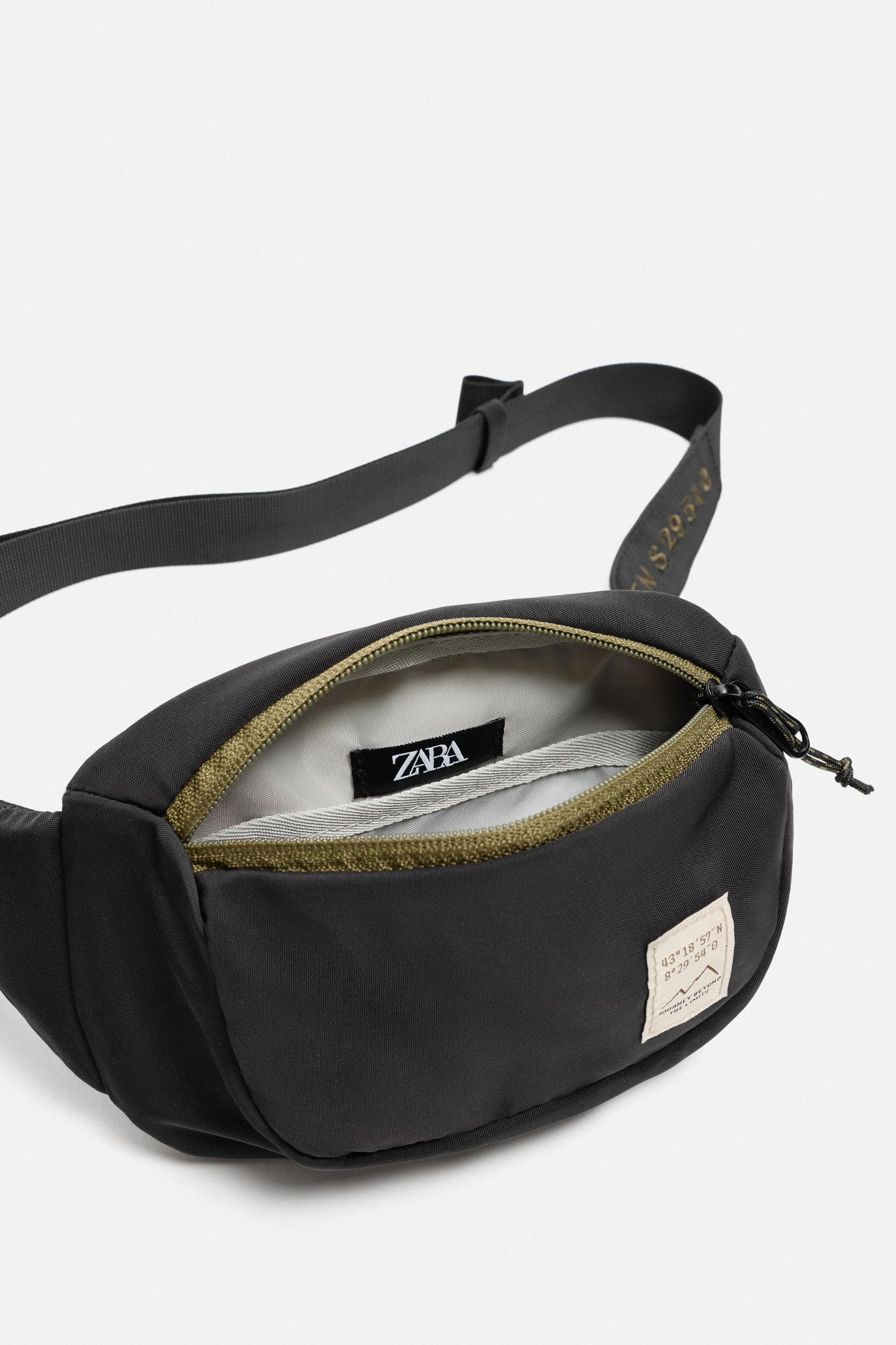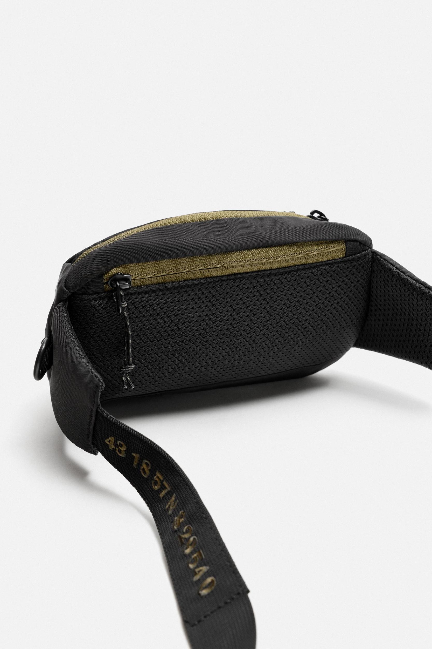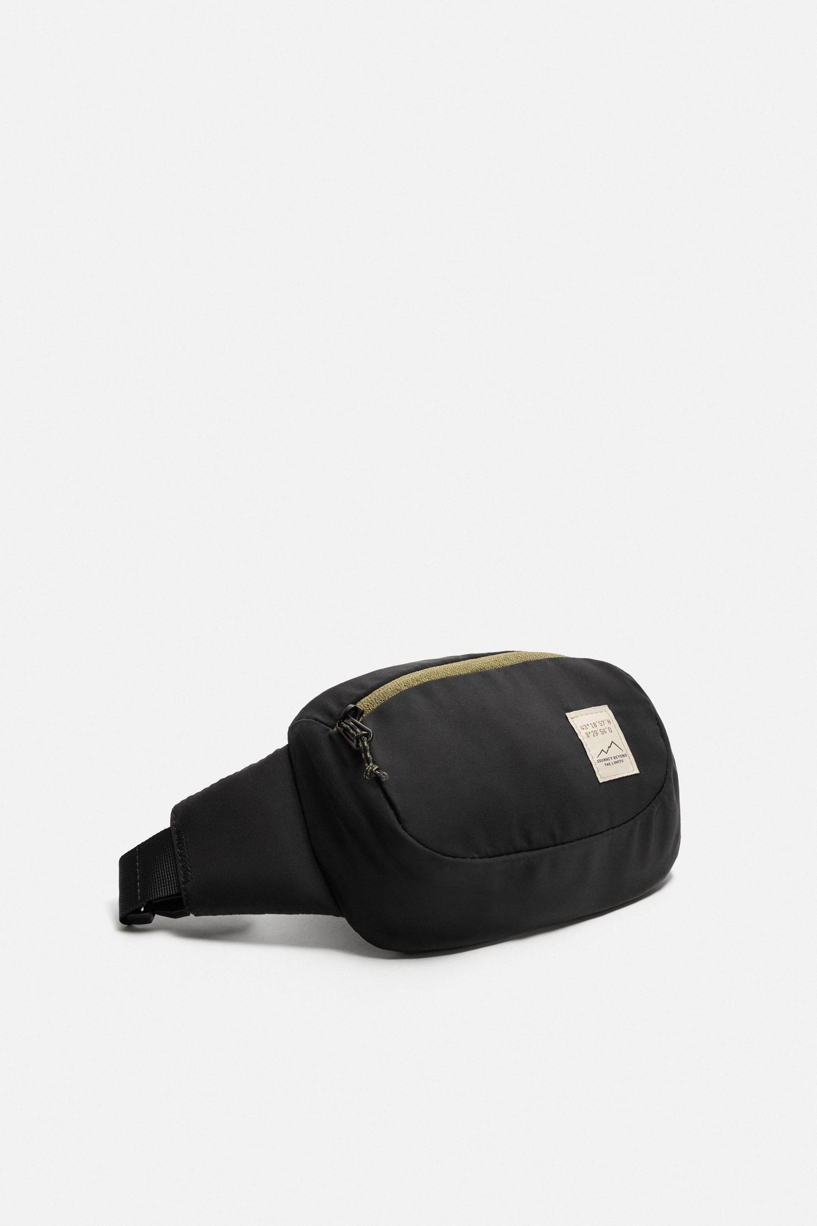Belt bag made of technical fabric. Main compartment with zipper closure. Interior features a flat pocket. Back pocket with zipper closure. Adjustable strap with metal quick-release buckle.